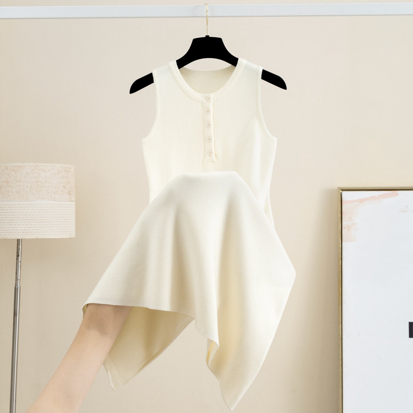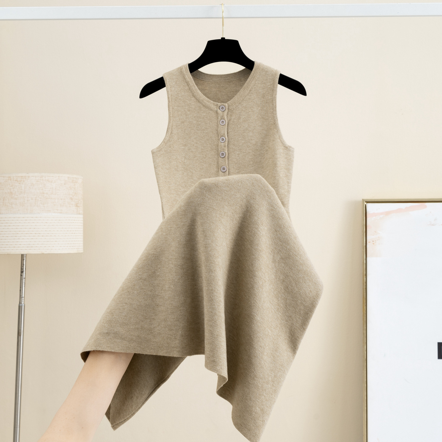 9325 春夏新作エレガントウール V ネックベストドレススリムルーズストレート気質ノースリーブベストドレス