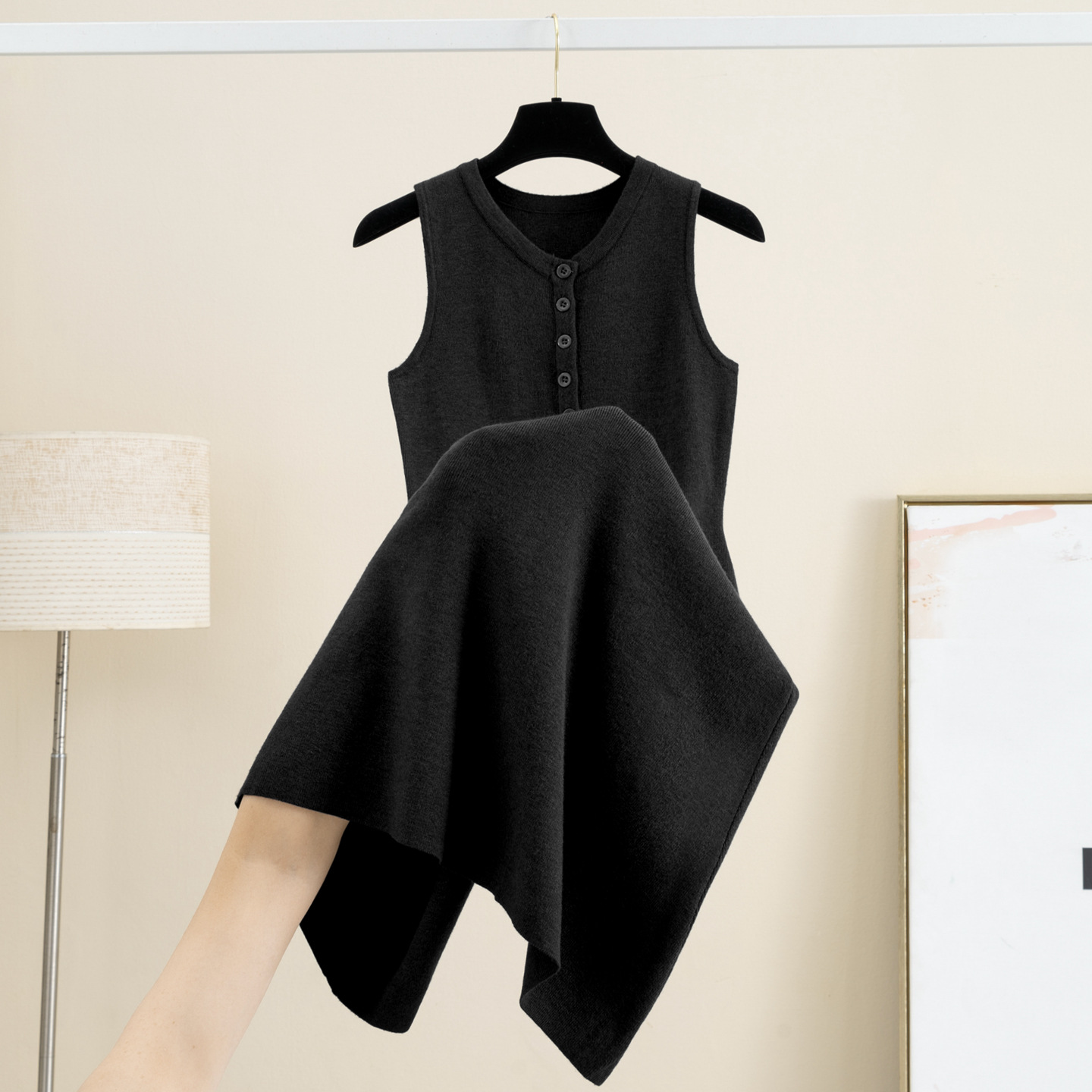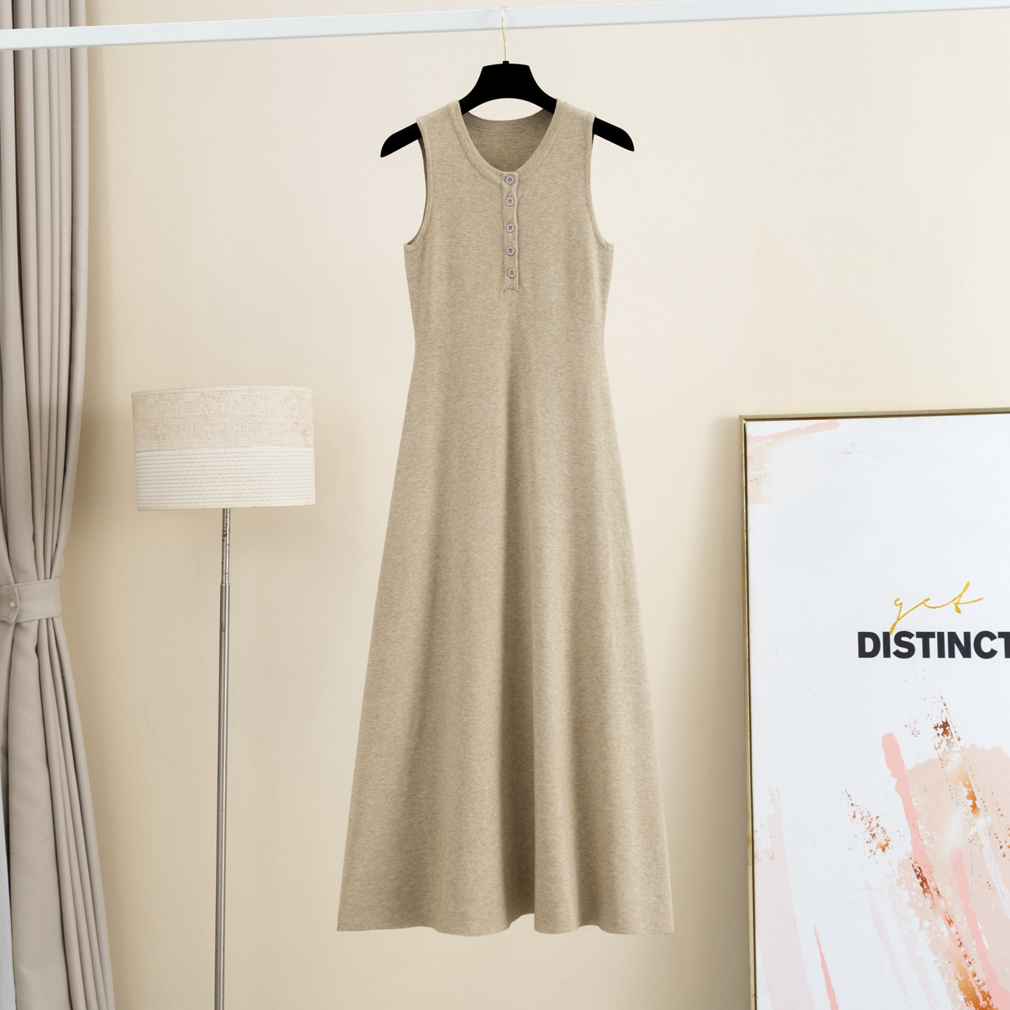秋冬圆领针织吊带背心连衣裙女无袖长款毛衣裙外穿内搭显瘦打底裙