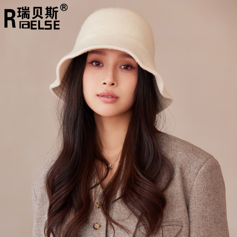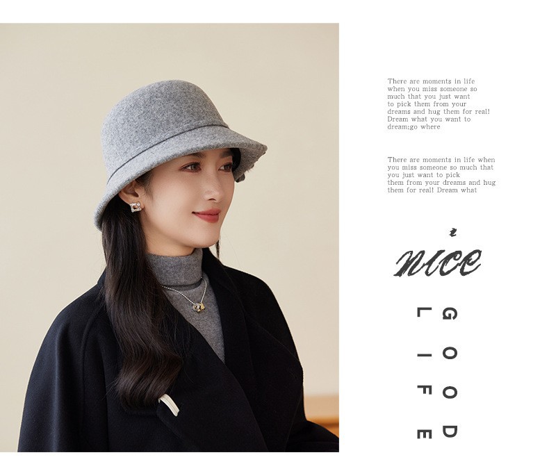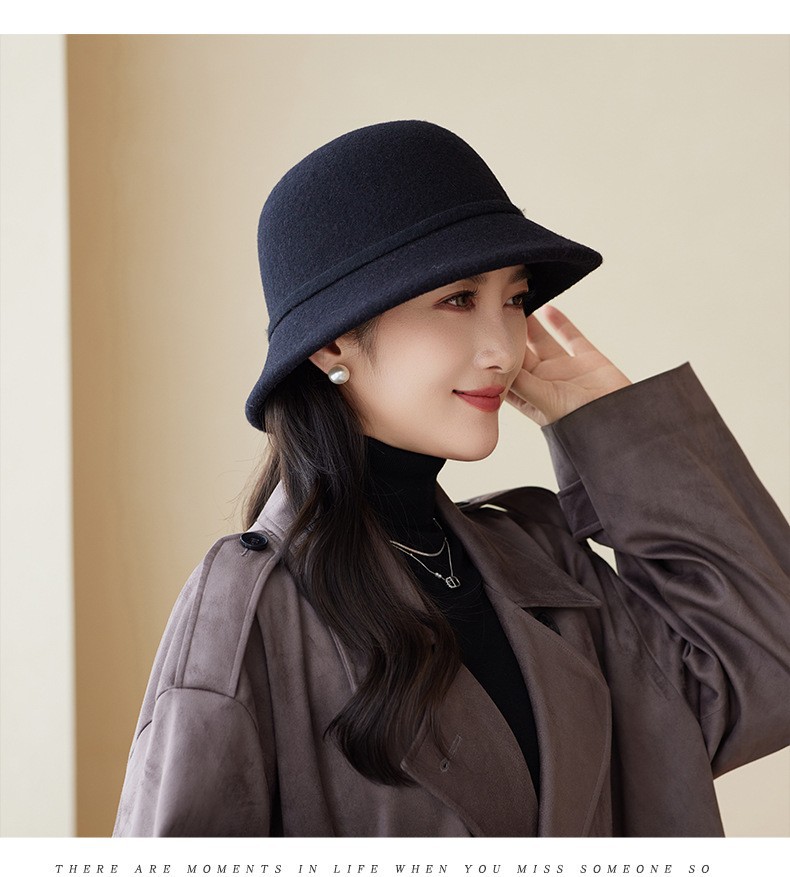 秋冬季羊毛帽子女时尚简约渔夫帽新款圆顶纯色户外旅游保暖盆帽潮