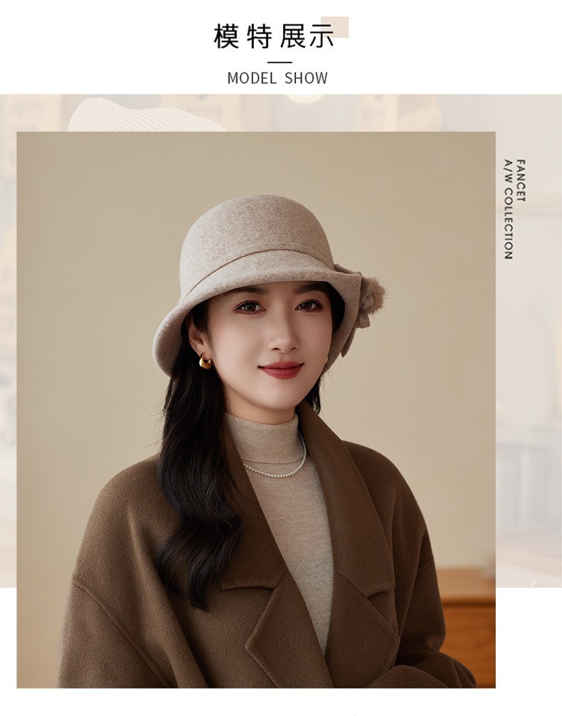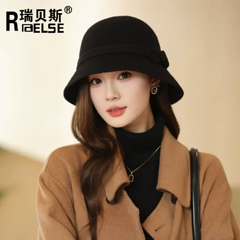 新作の帽子韓国版秋冬の蝶結びのバケツの帽子の女性のウールの鉢の帽子の英倫の復古のフェルトの漁師の帽子