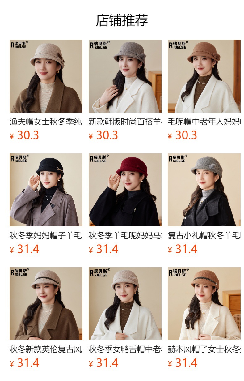 毛呢帽中老年人妈妈帽子女士秋冬季奶奶加厚保暖羊毛盆帽婆婆礼帽