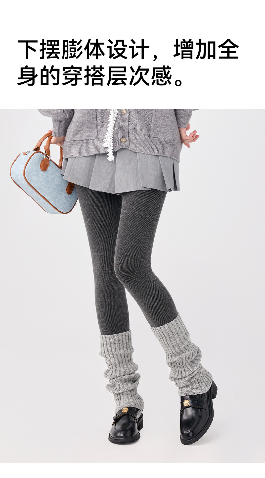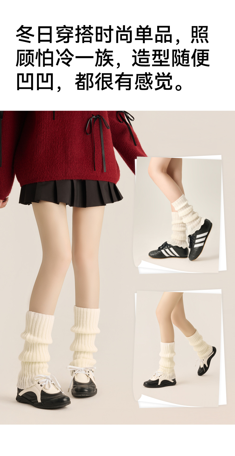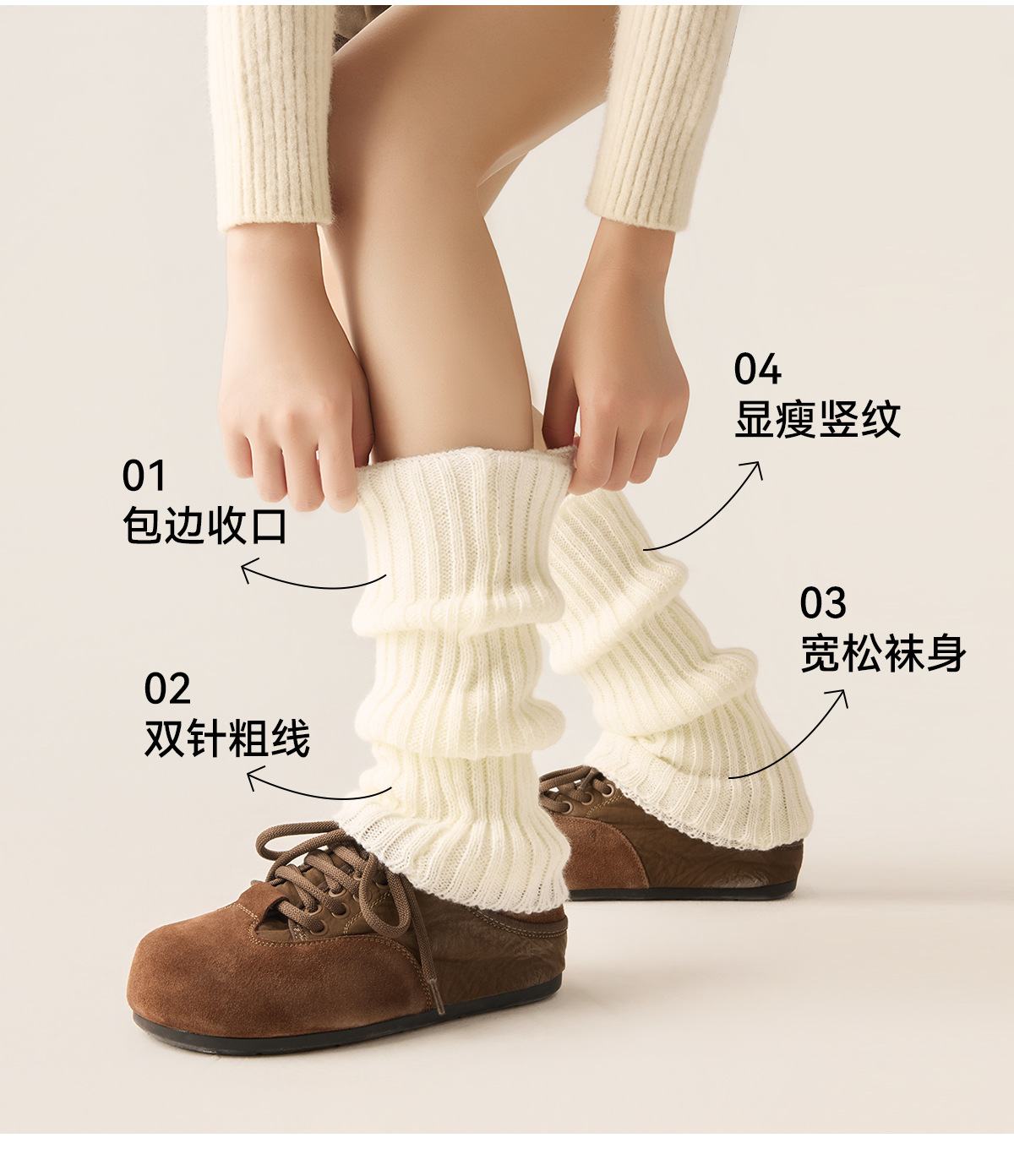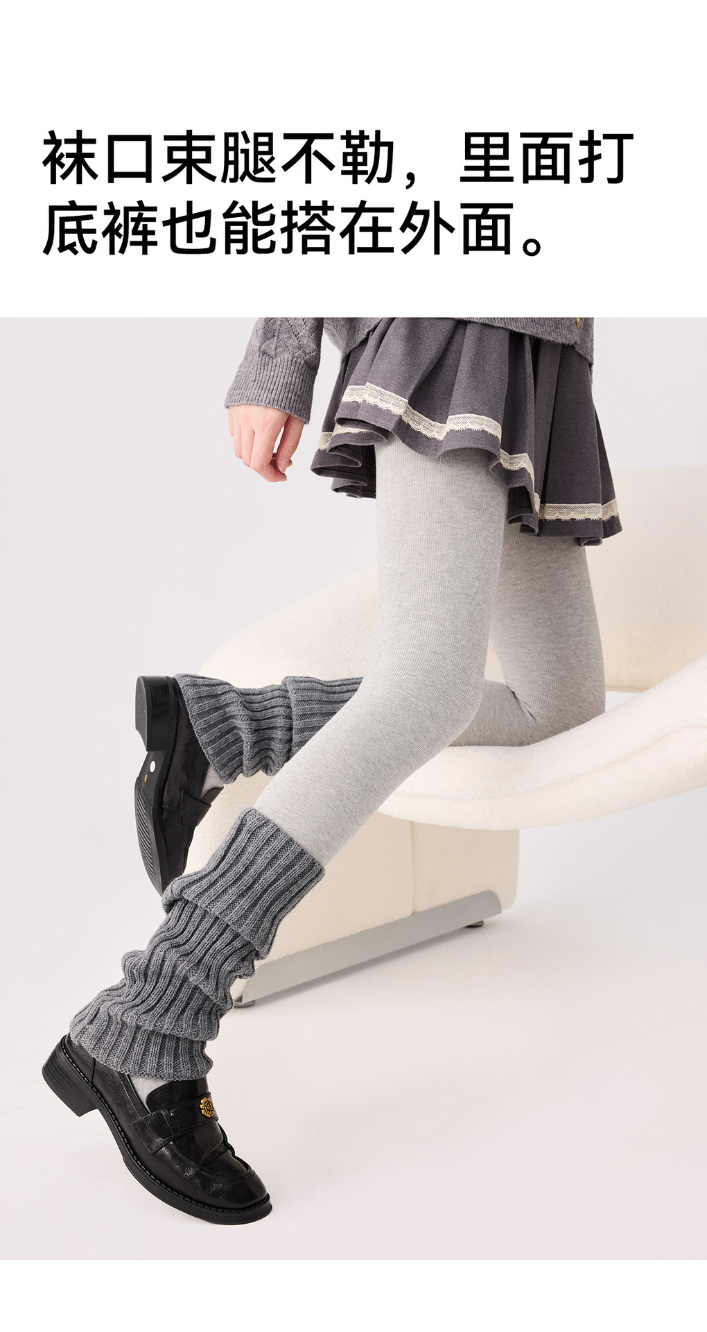 白色袜套秋冬百搭针织堆堆袜腿套冬季保暖加厚灰色堆堆袜针织袜套