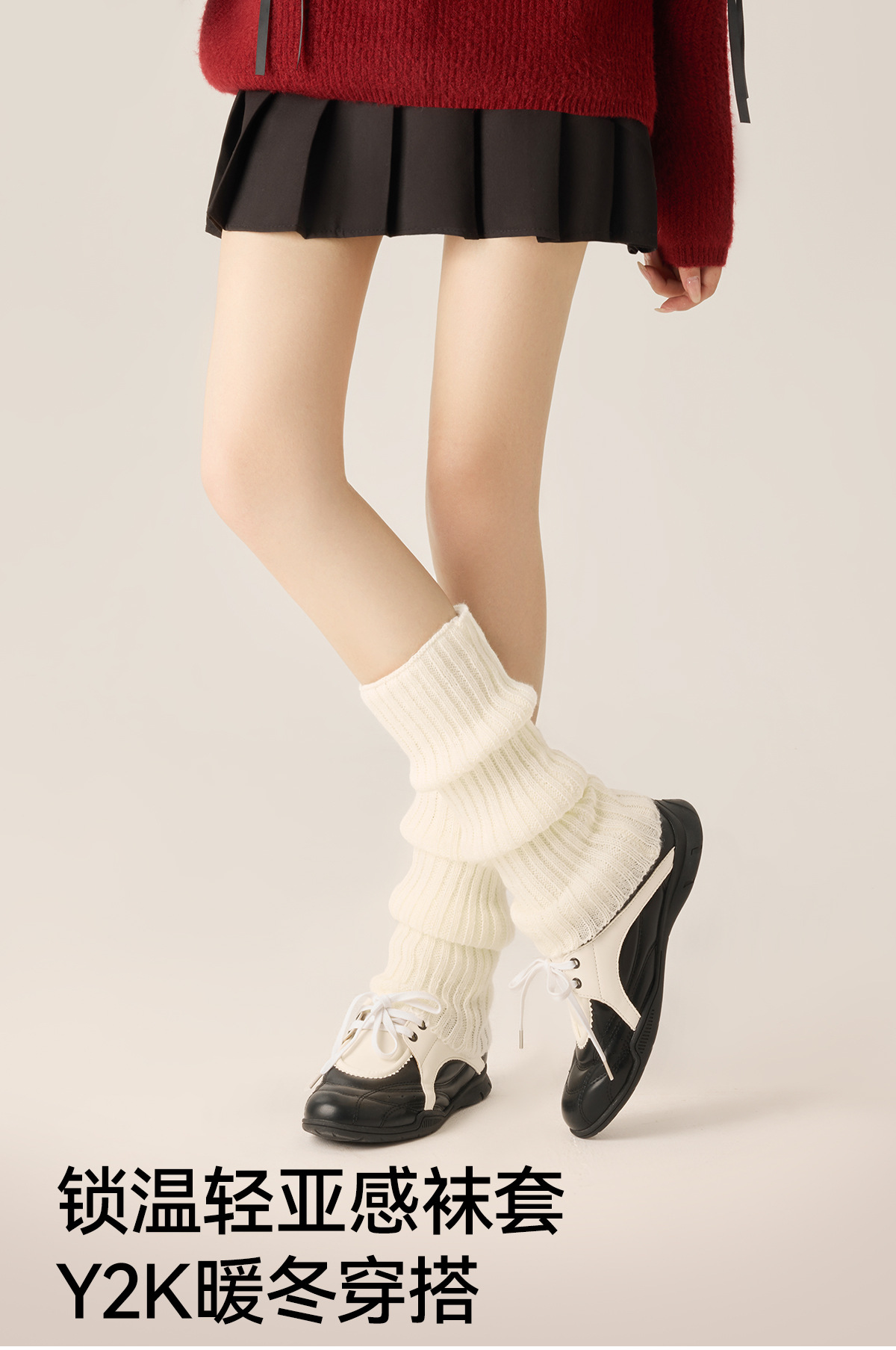 靴下を積む女性秋冬jkニット下腿靴下毛糸白い靴下アクリル保温下腿カバーy 2k