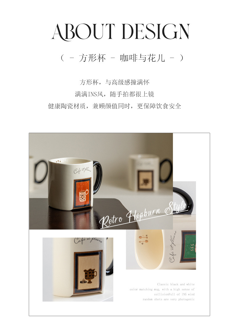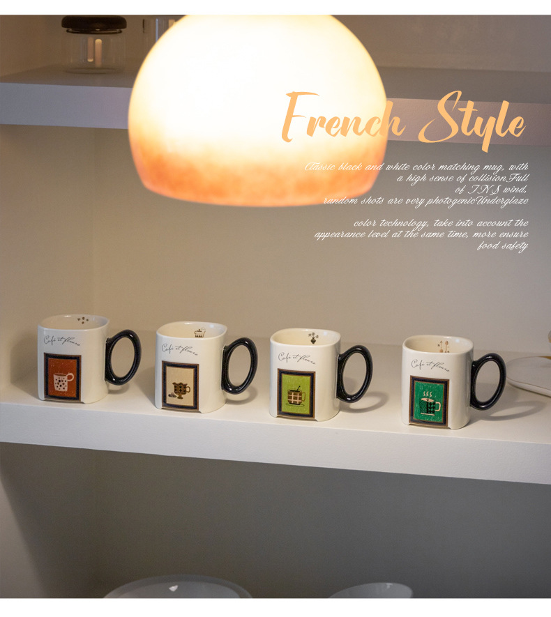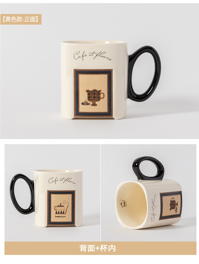 法式复古陶瓷马克杯咖啡杯早餐喝水杯情侣对杯送礼结婚伴手礼对杯