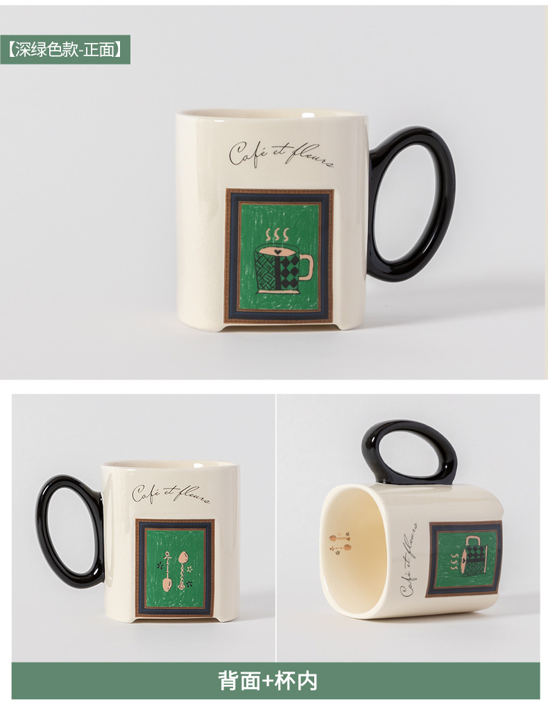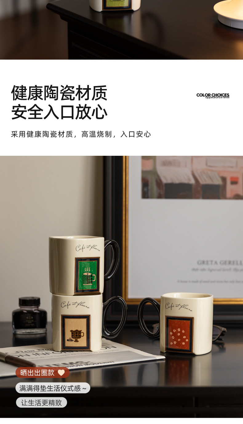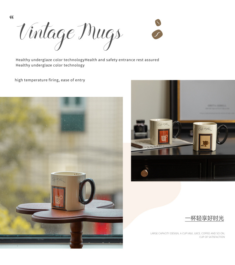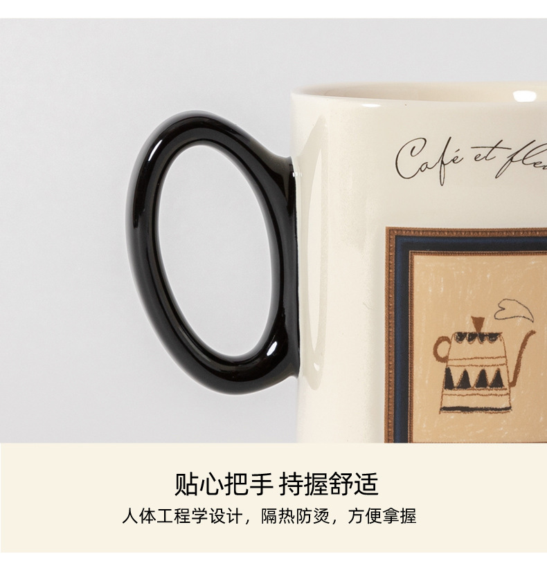 中古风陶瓷咖啡杯复古马克杯大容量厚实高颜值法式喝水杯早餐杯