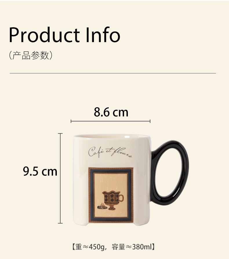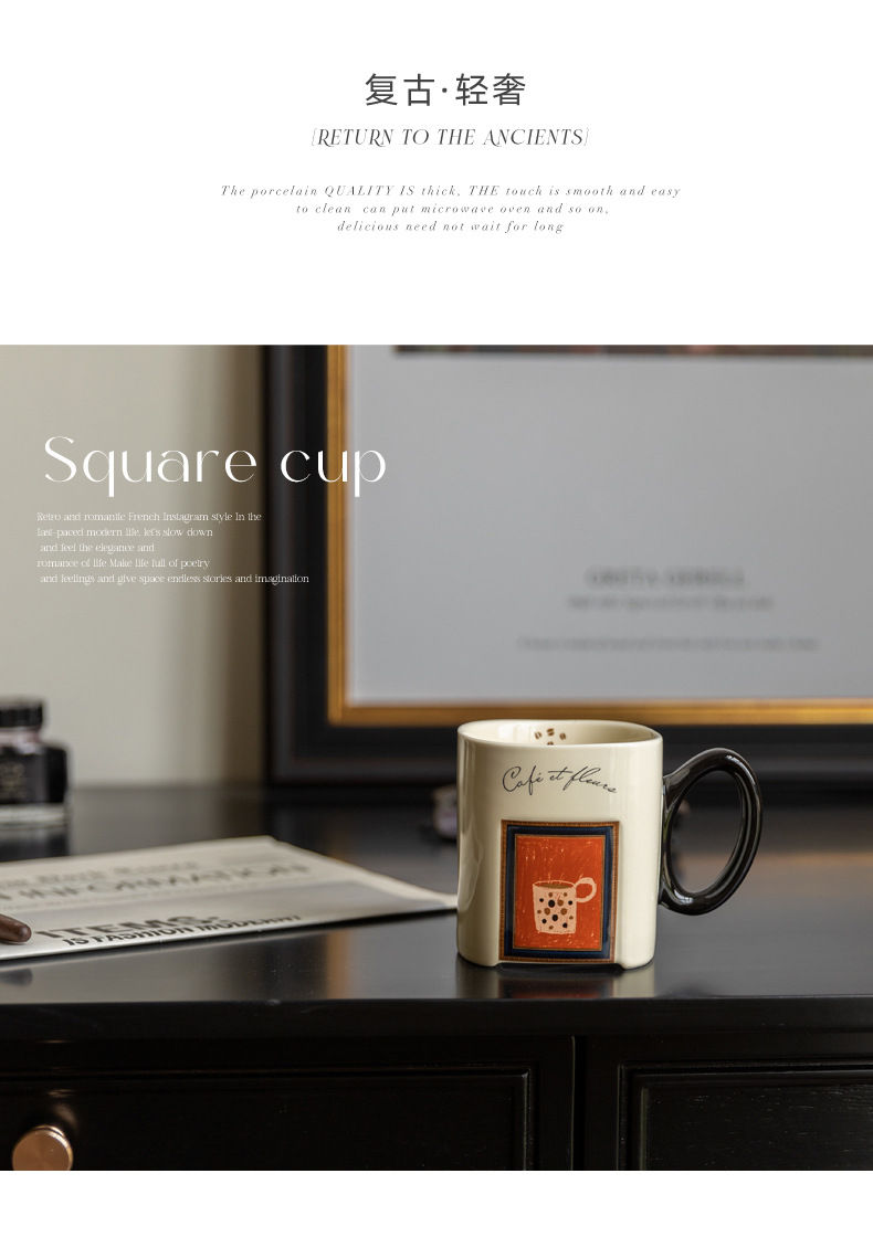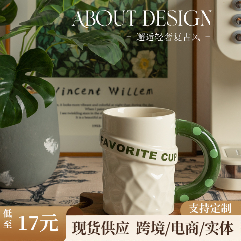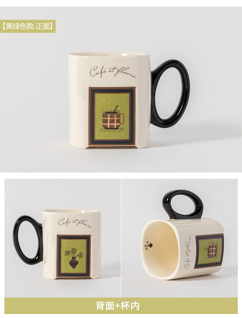中古风陶瓷咖啡杯复古马克杯大容量厚实高颜值法式喝水杯早餐杯