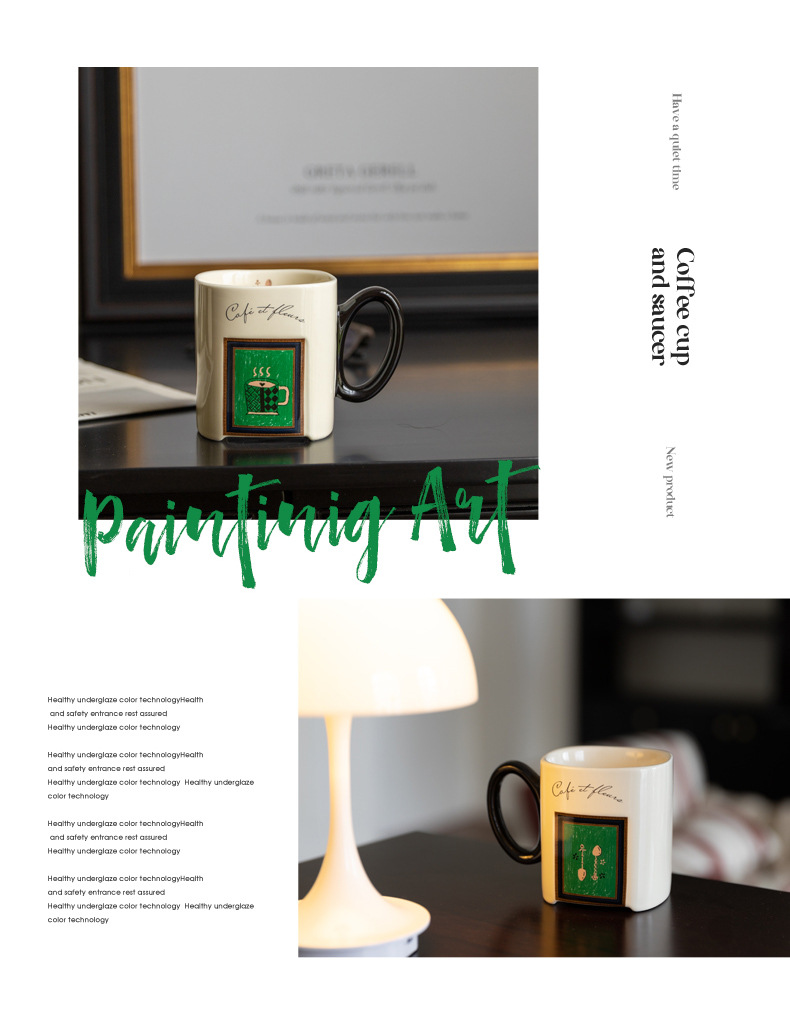墨花クリーム色陶磁器コーヒーカップ水墨風マグカップコップコップ牛乳朝食カップ小清新高級感