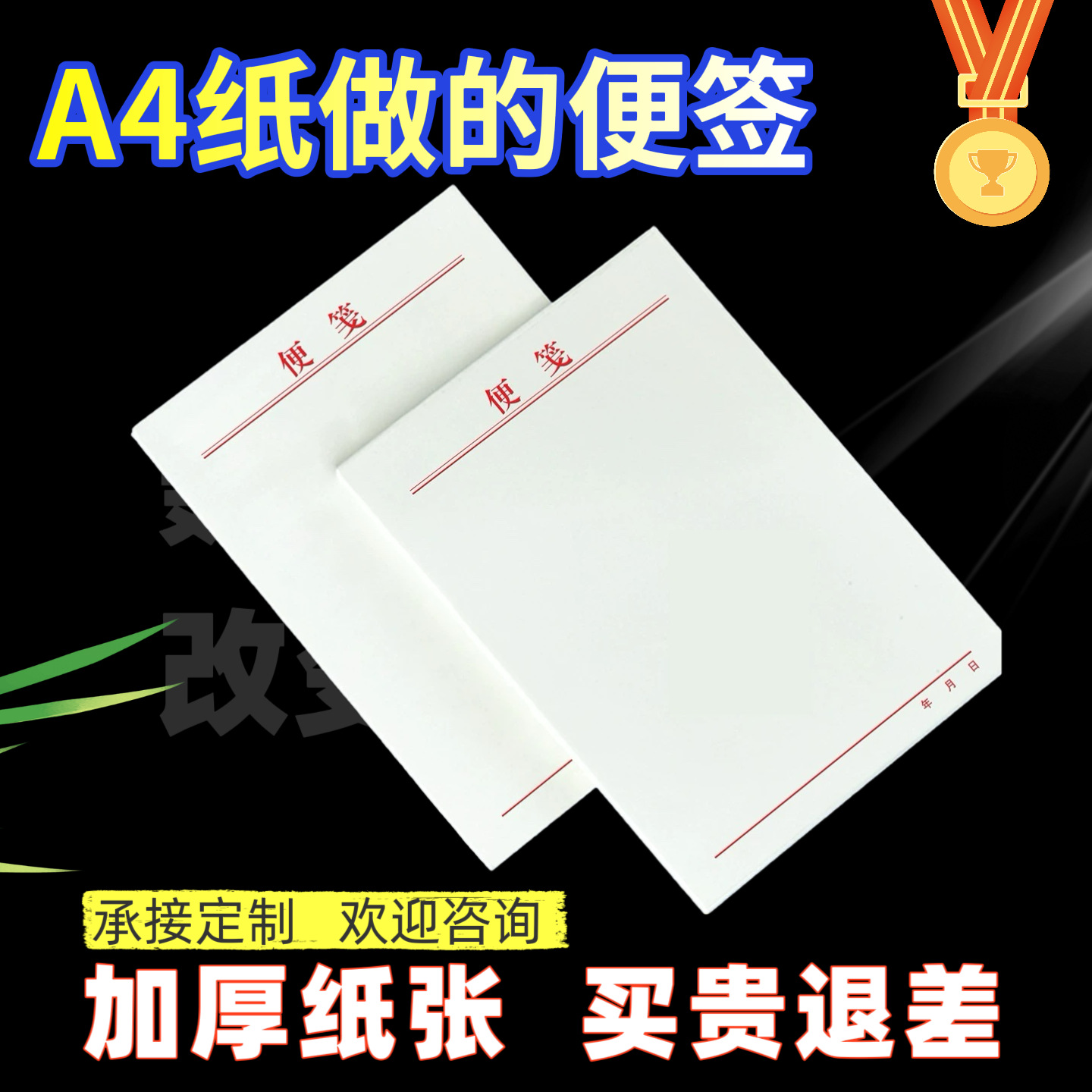 両面書き込み可能な無地のメモ用紙、切り取れる大型ノンスティックメモ帳、空白の厚手の便箋、白い紙