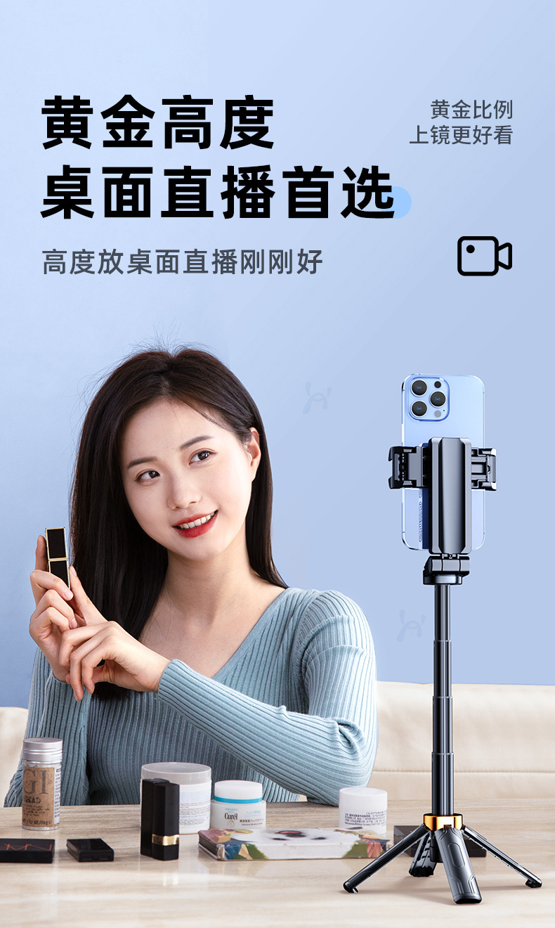超迷你自拍杆便捷手机助推器手持蓝牙拍照直播三脚架防抖旅游户外