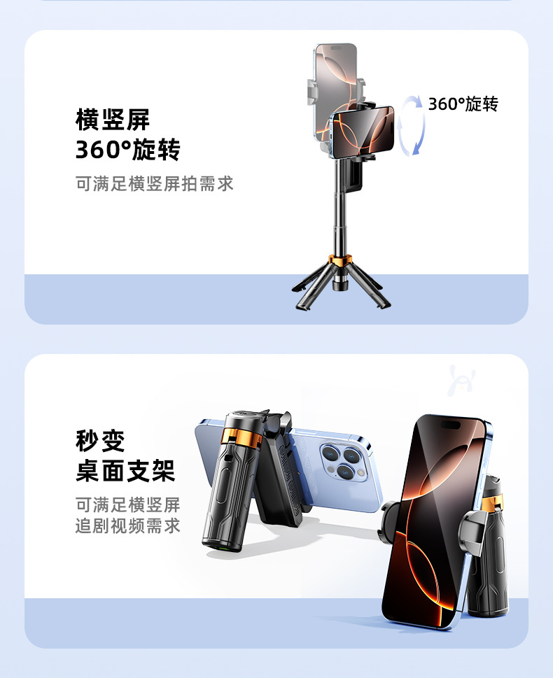 超迷你自拍杆旅游便携手机三脚架一体式手持落地桌面通用360旋转