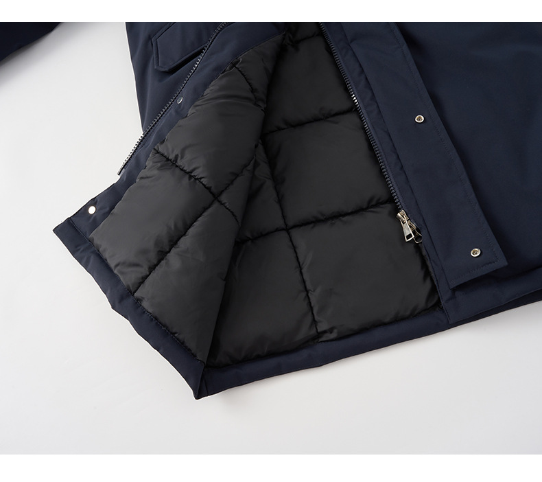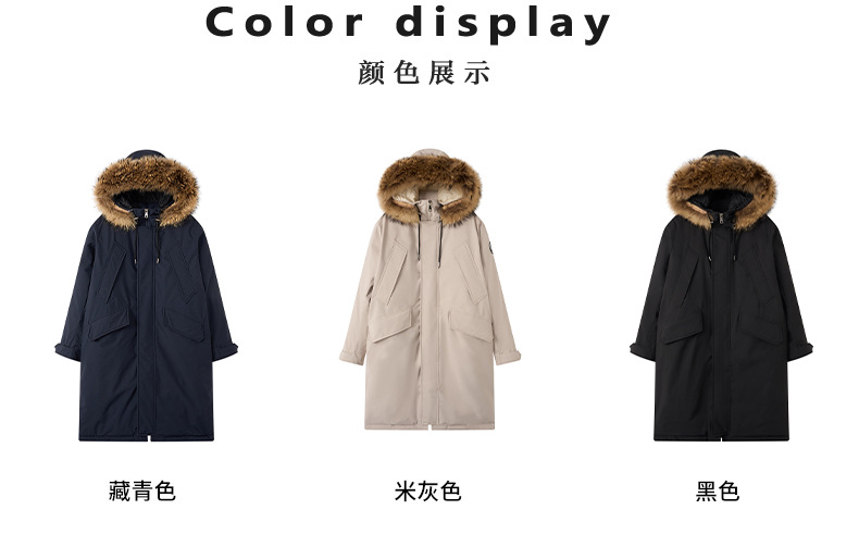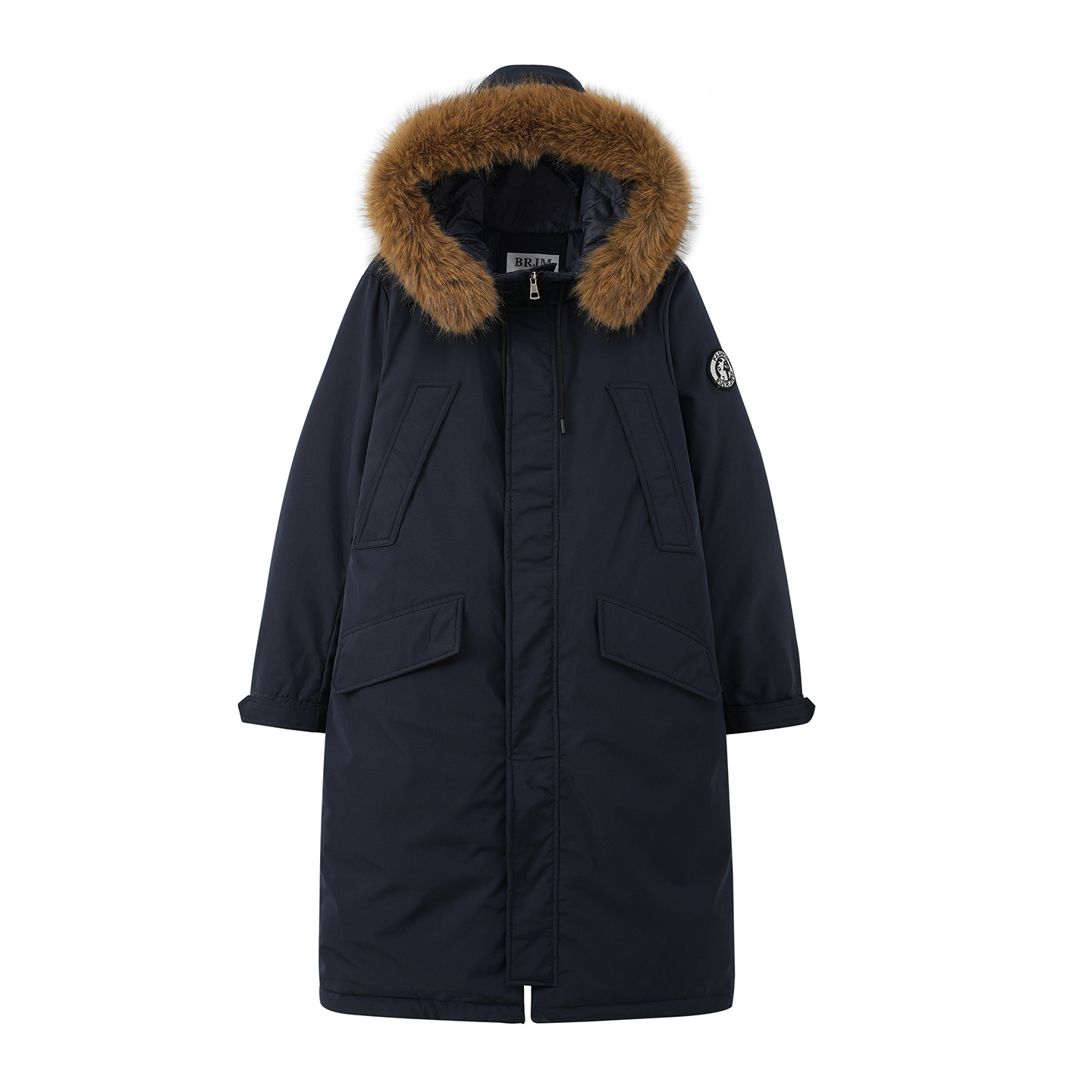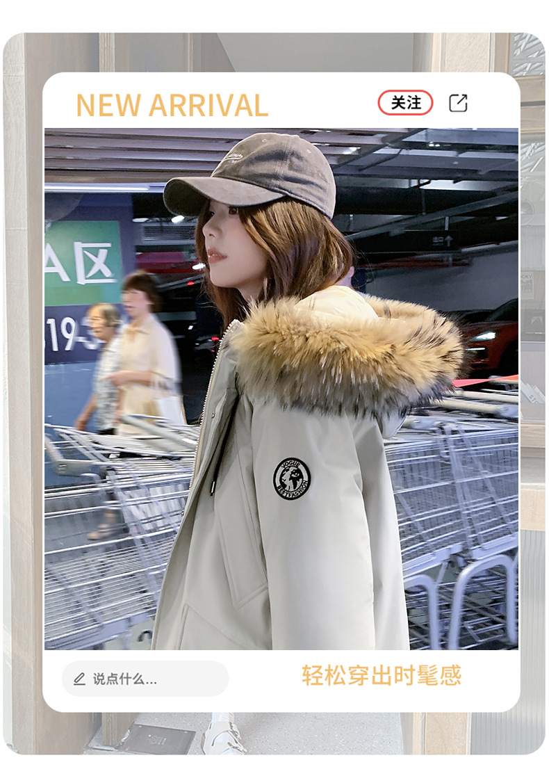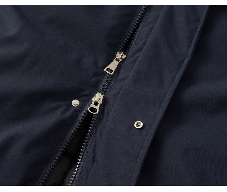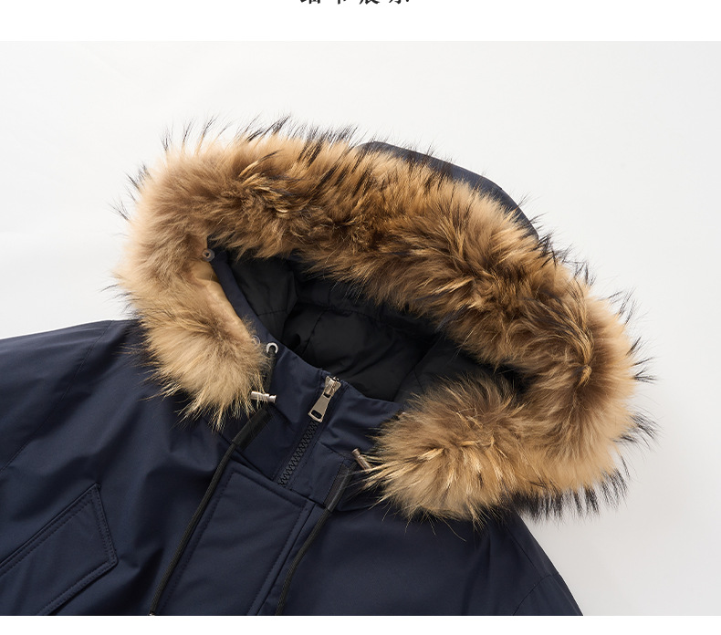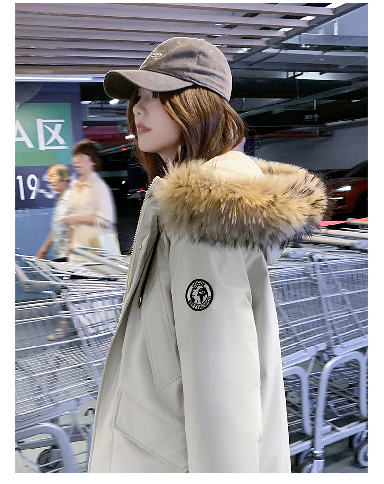 藏青色中长款工装派克羽绒棉服女2025冬季新款加厚宽松大毛领棉衣