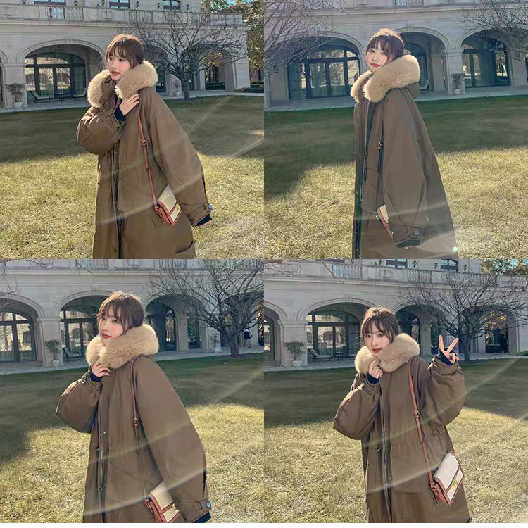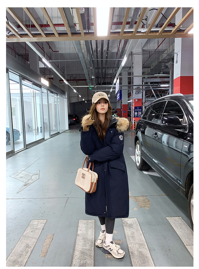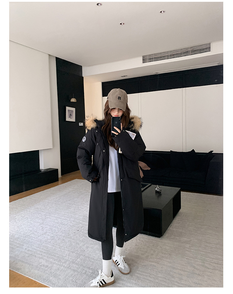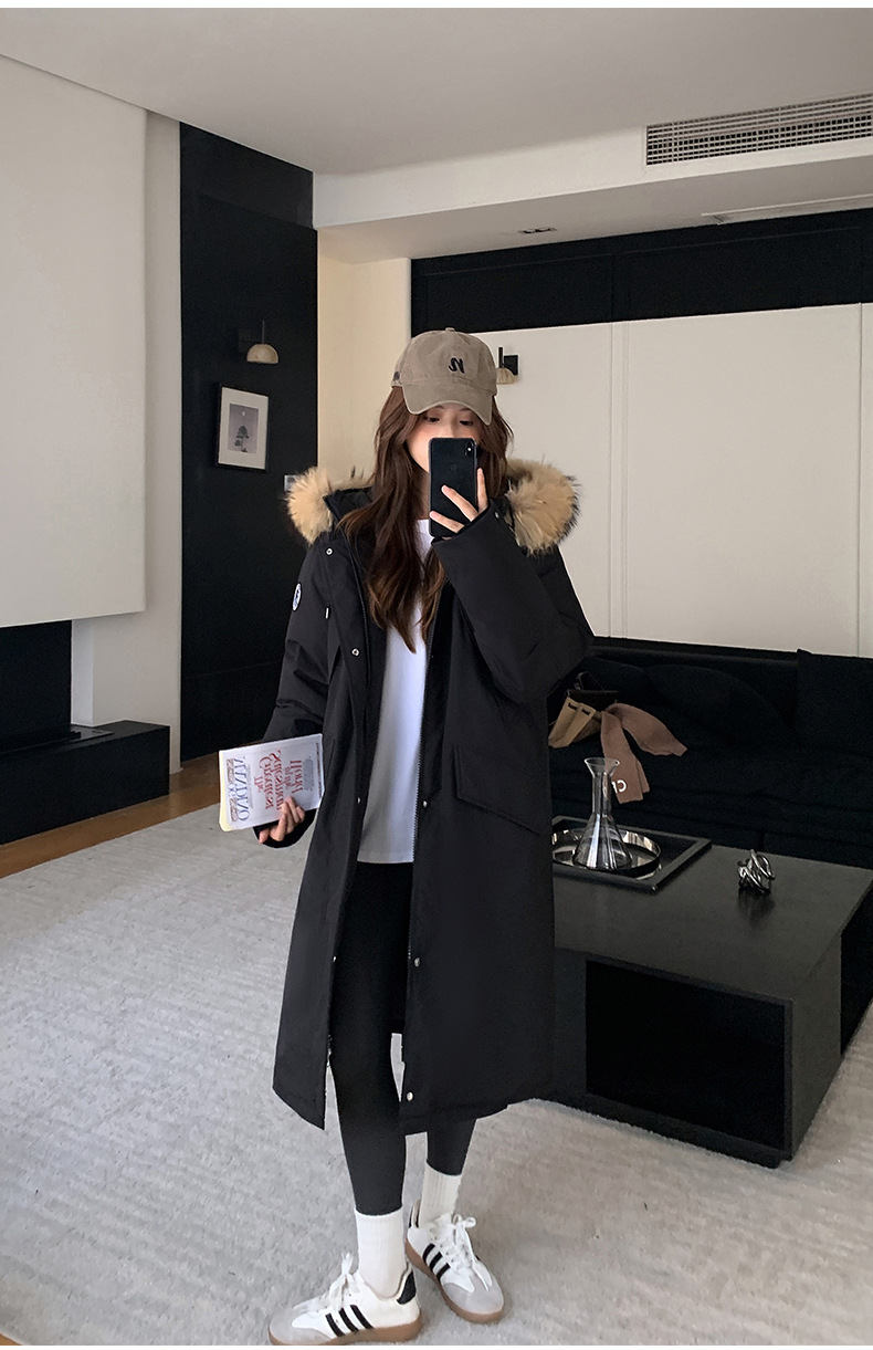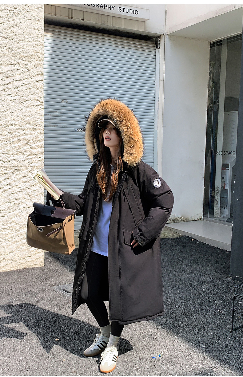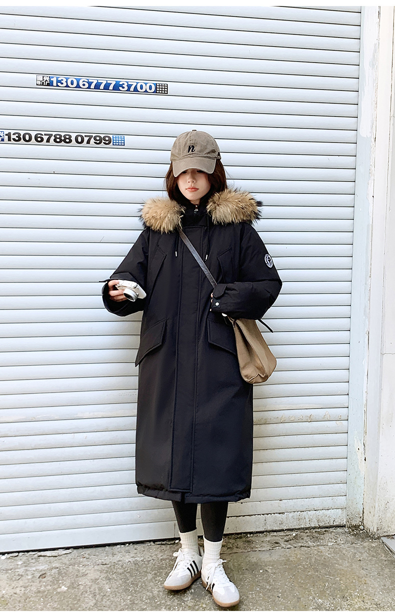2025年冬装韩版长款过膝棉服连帽大毛领加厚时尚百搭棉袄外套