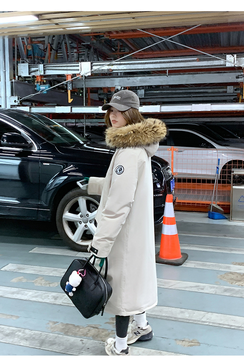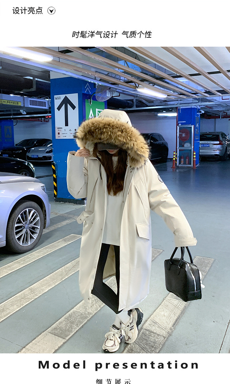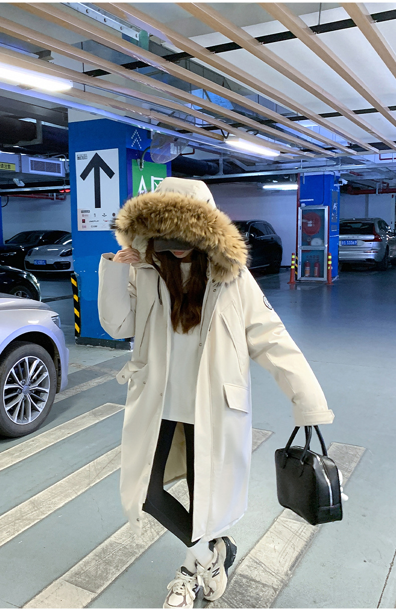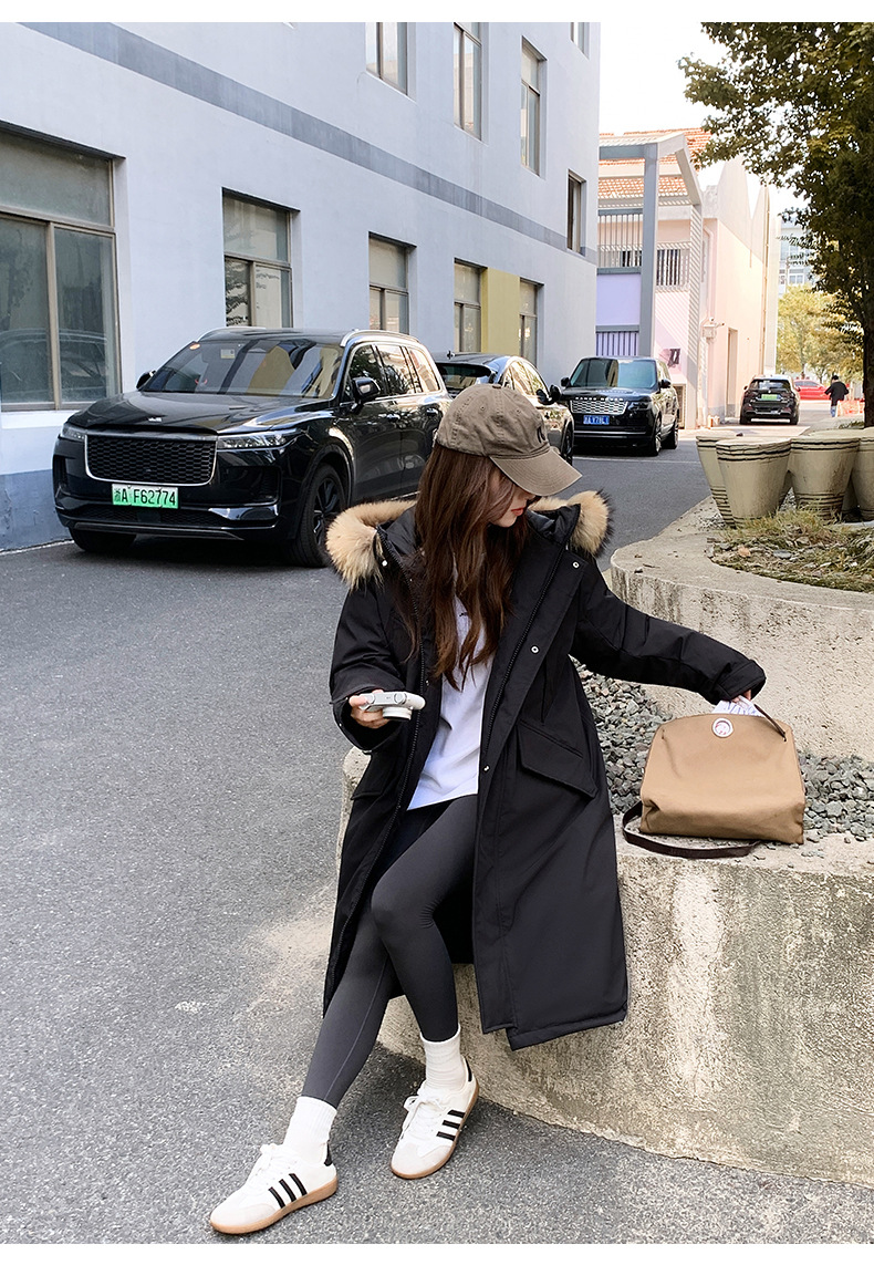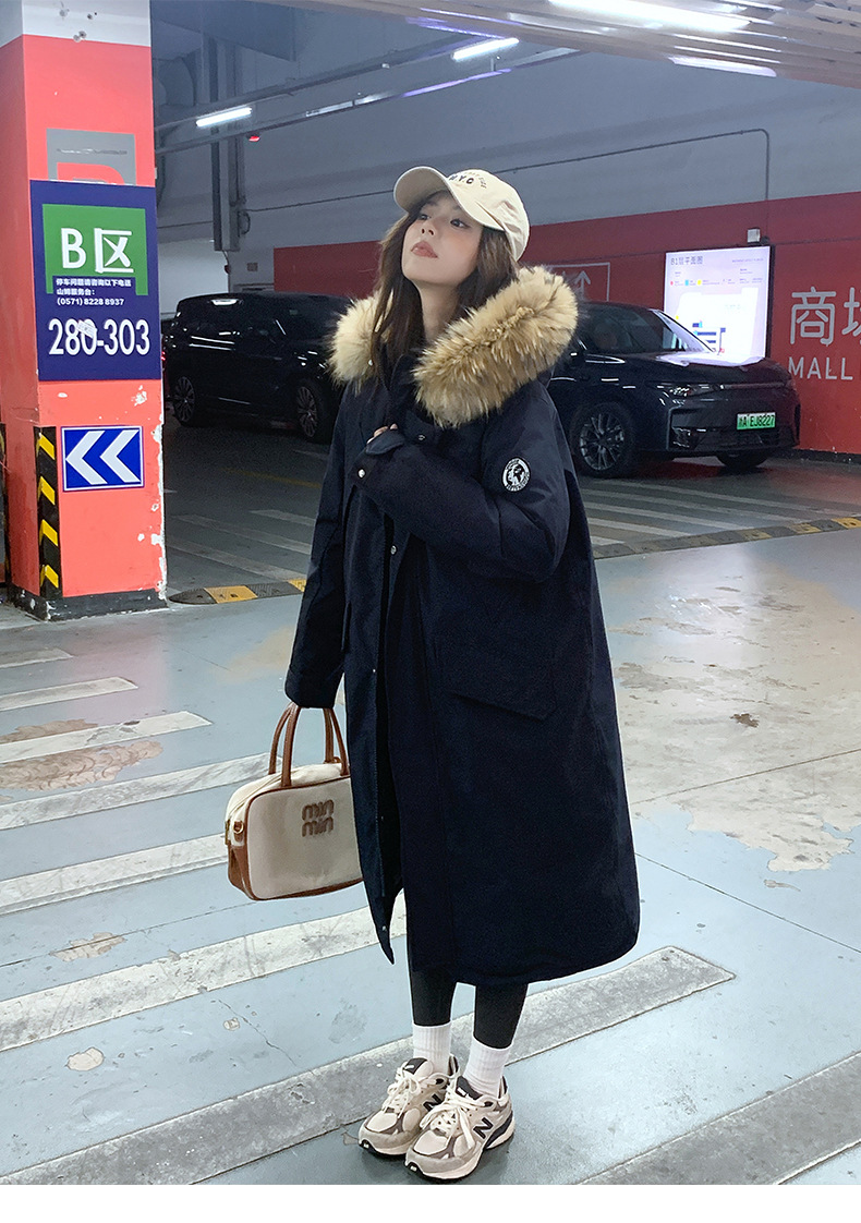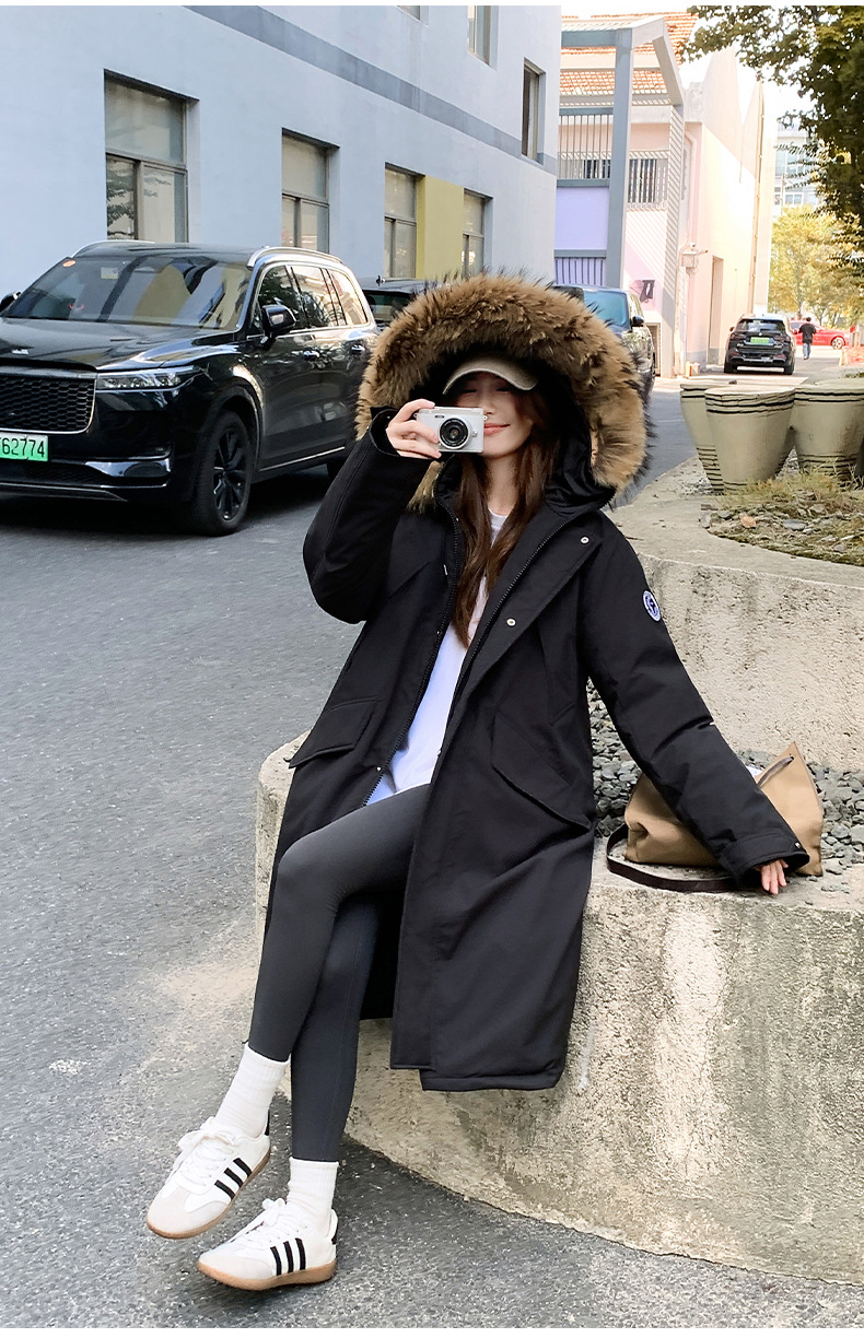 2025年冬装韩版长款过膝棉服连帽大毛领加厚时尚百搭棉袄外套