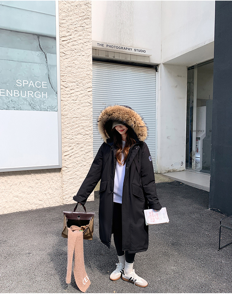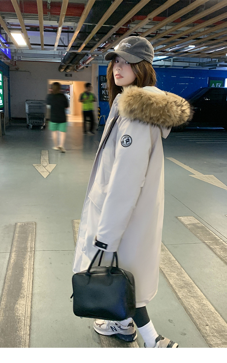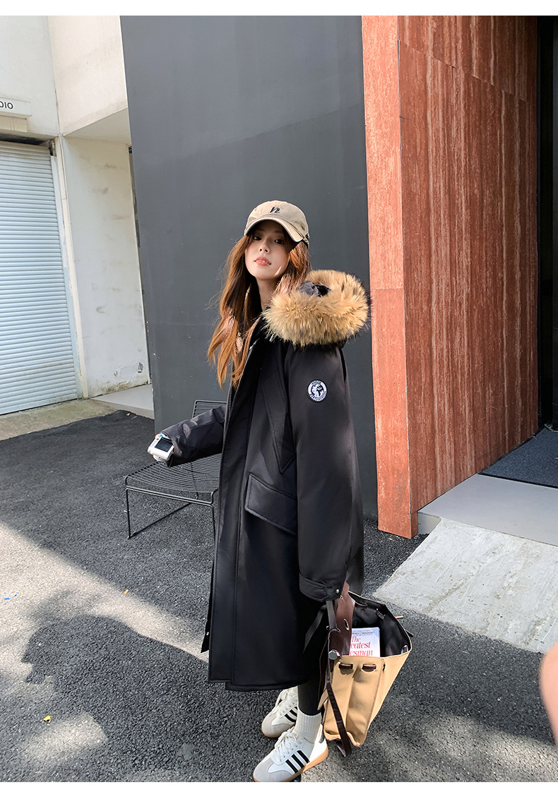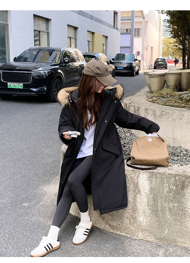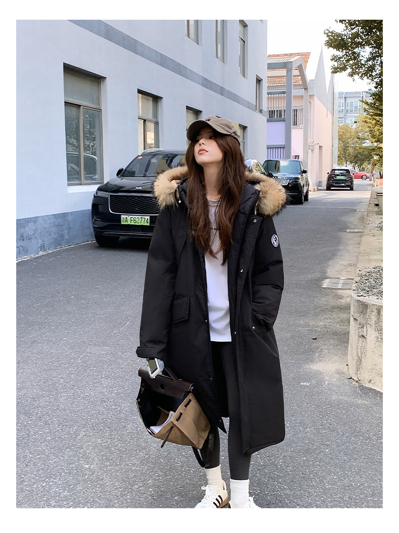 2025年冬装韩版长款过膝棉服连帽大毛领加厚时尚百搭棉袄外套