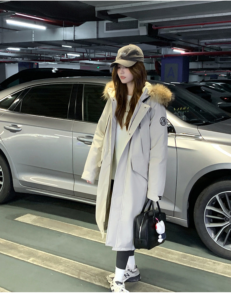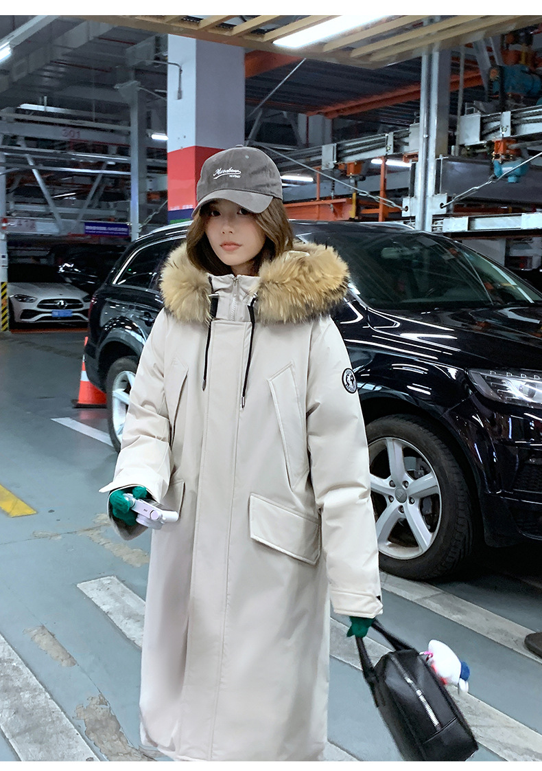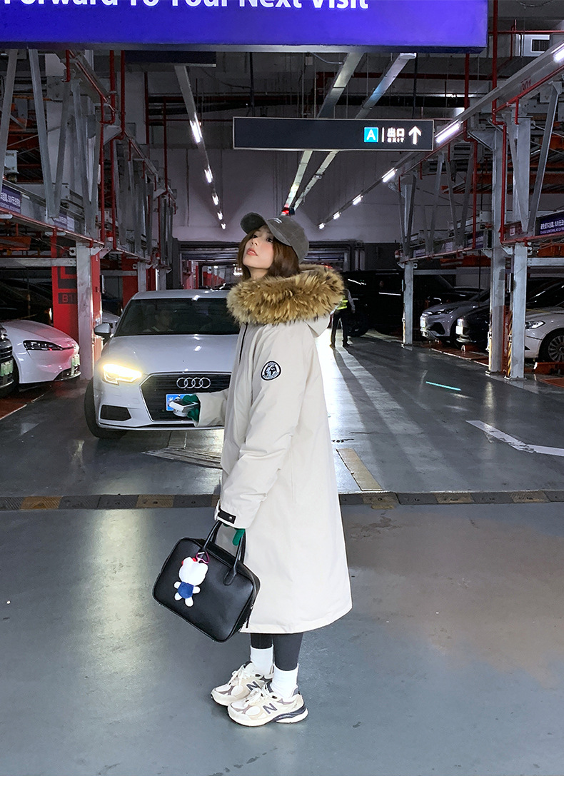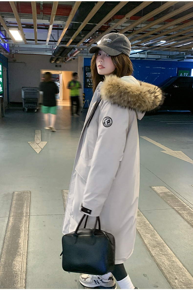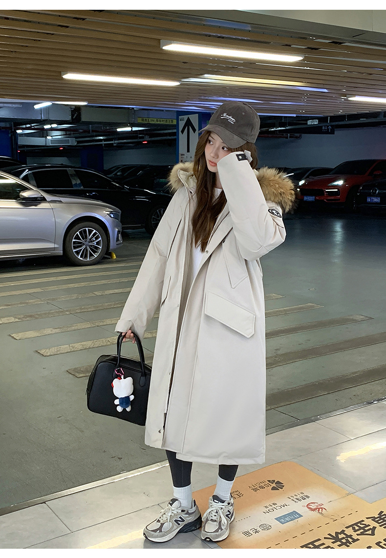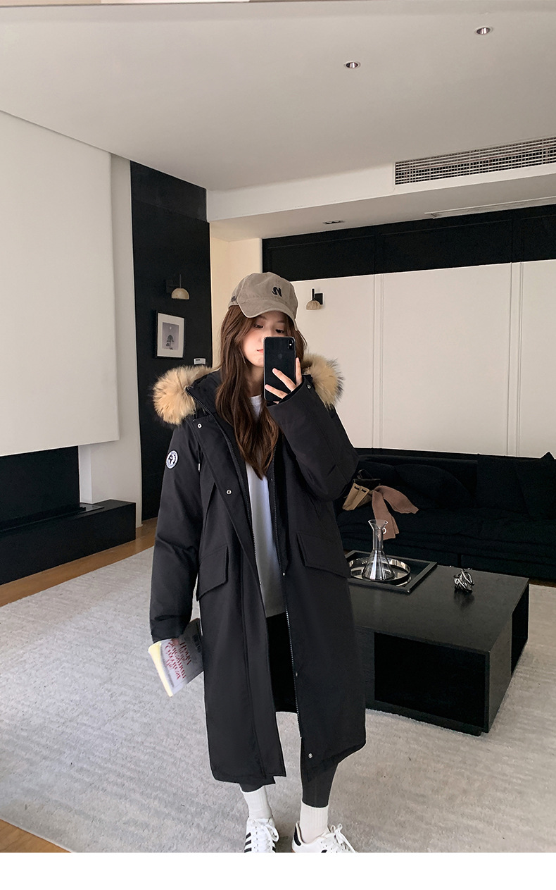 2025年冬装韩版长款过膝棉服连帽大毛领加厚时尚百搭棉袄外套