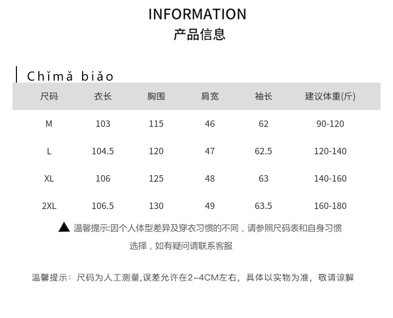 尺码 M建议90-120,L建议120-140,XL建议140-160,2XL建议160-180