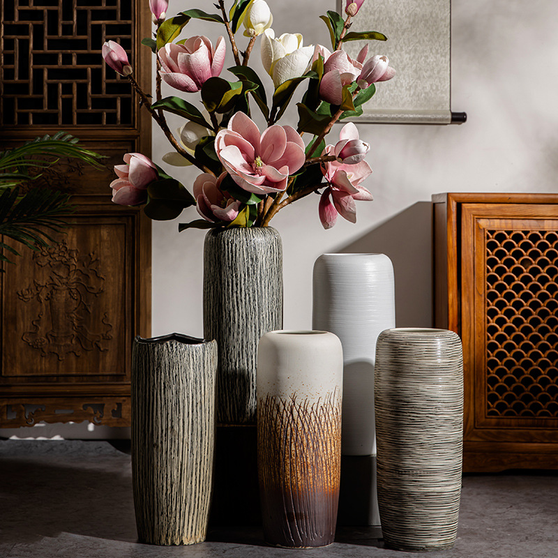 景徳鎮セラミックスーパービッグ花瓶装飾品リビングルームフラワーアレンジメントレトロ床置き花瓶B&B水耕樹皮テクスチャ
