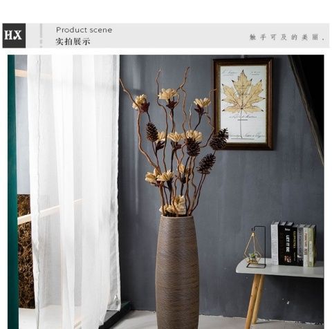 新型超大花瓶置物客間生け花レトロ着地創意民宿水培樹皮シンプル葦花
