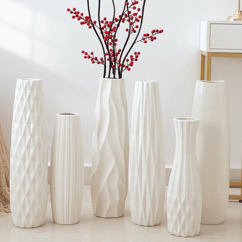 落地花瓶落地式简约陶瓷创意白色水培欧式摆件家居干花插花客厅