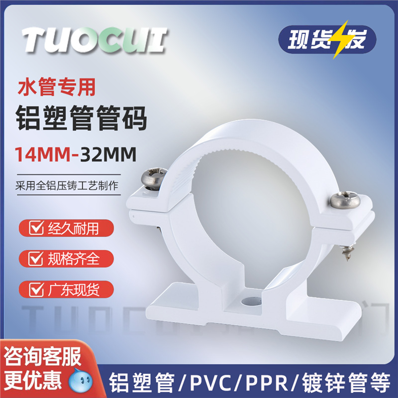 アルミプラスチックパイプ用管止め、パイプクランプ、パイプホルダー、アルミ製固定金具、浴室用金物、配管壁固定金具、クランプ
