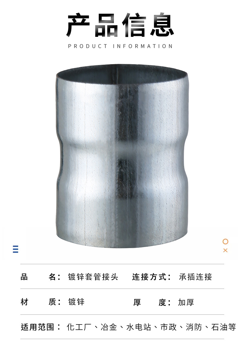 亜鉛メッキ管継手、亜鉛メッキ無溶接直接継手、亜鉛メッキスリーブ、通線管、亜鉛メッキ異径管、亜鉛メッキ縮小管