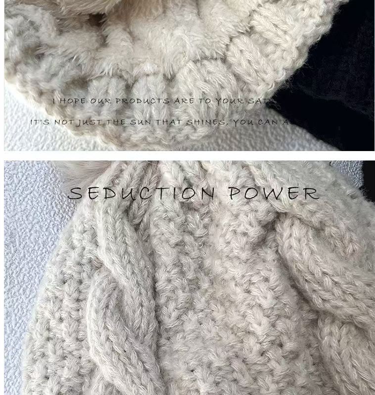 秋と冬の暖かいクロスボーダーニット帽レディース帽子大きなファーボール無地多用途ヨーロッパとアメリカのウール帽子プラスベルベットと厚みのある屋外