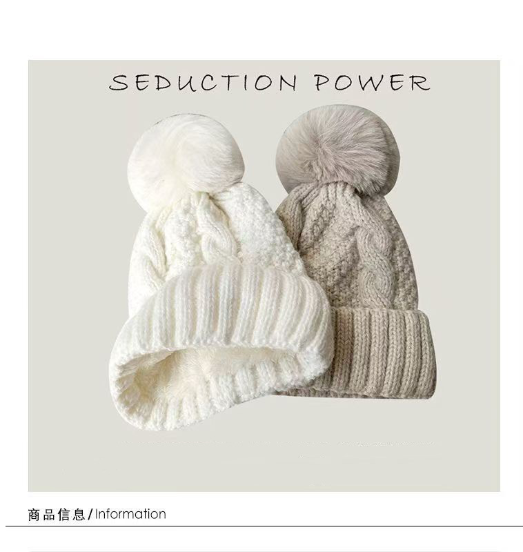 加绒毛线帽女款冬季保暖加厚百搭冷帽防风麻花针织帽护耳学生帽子