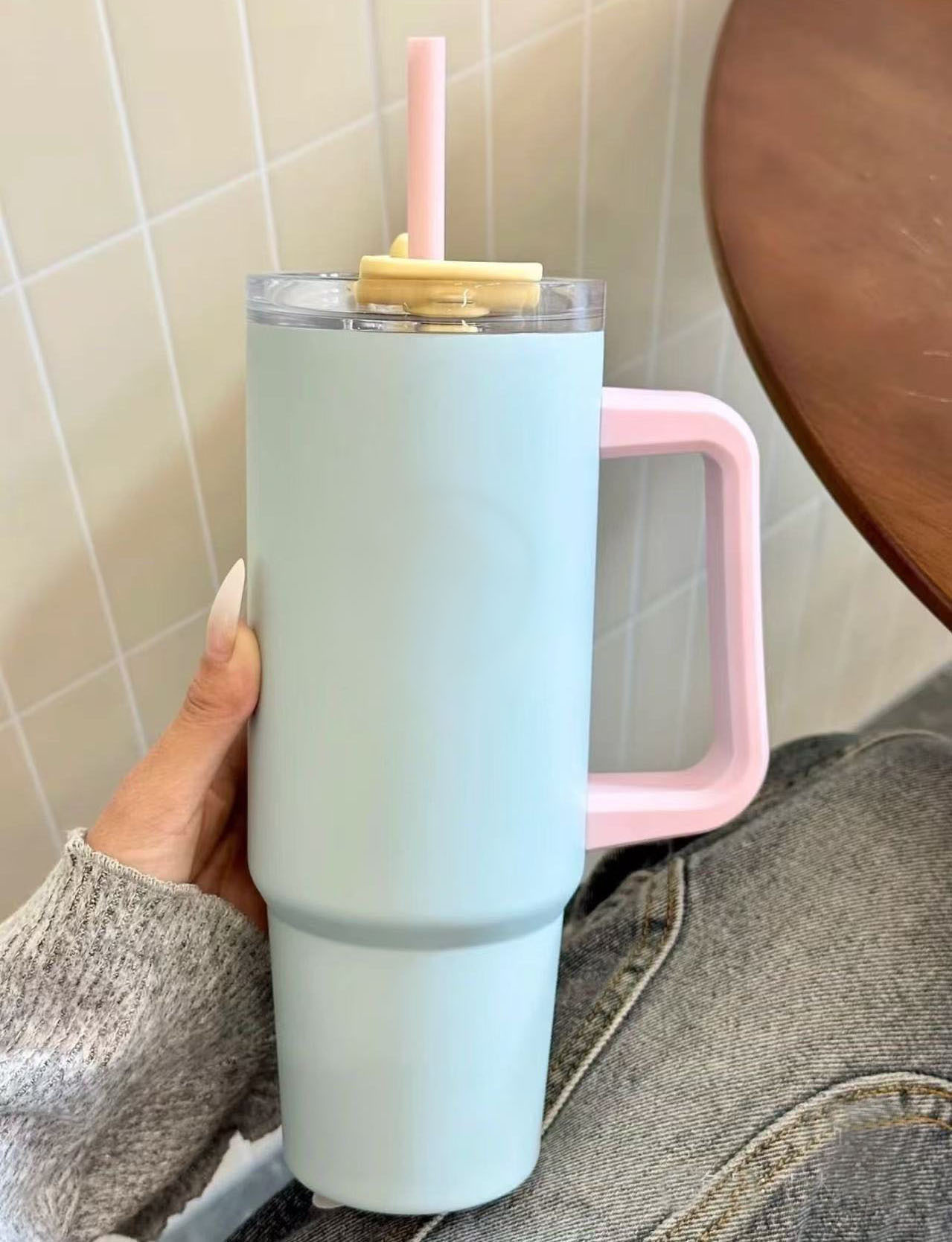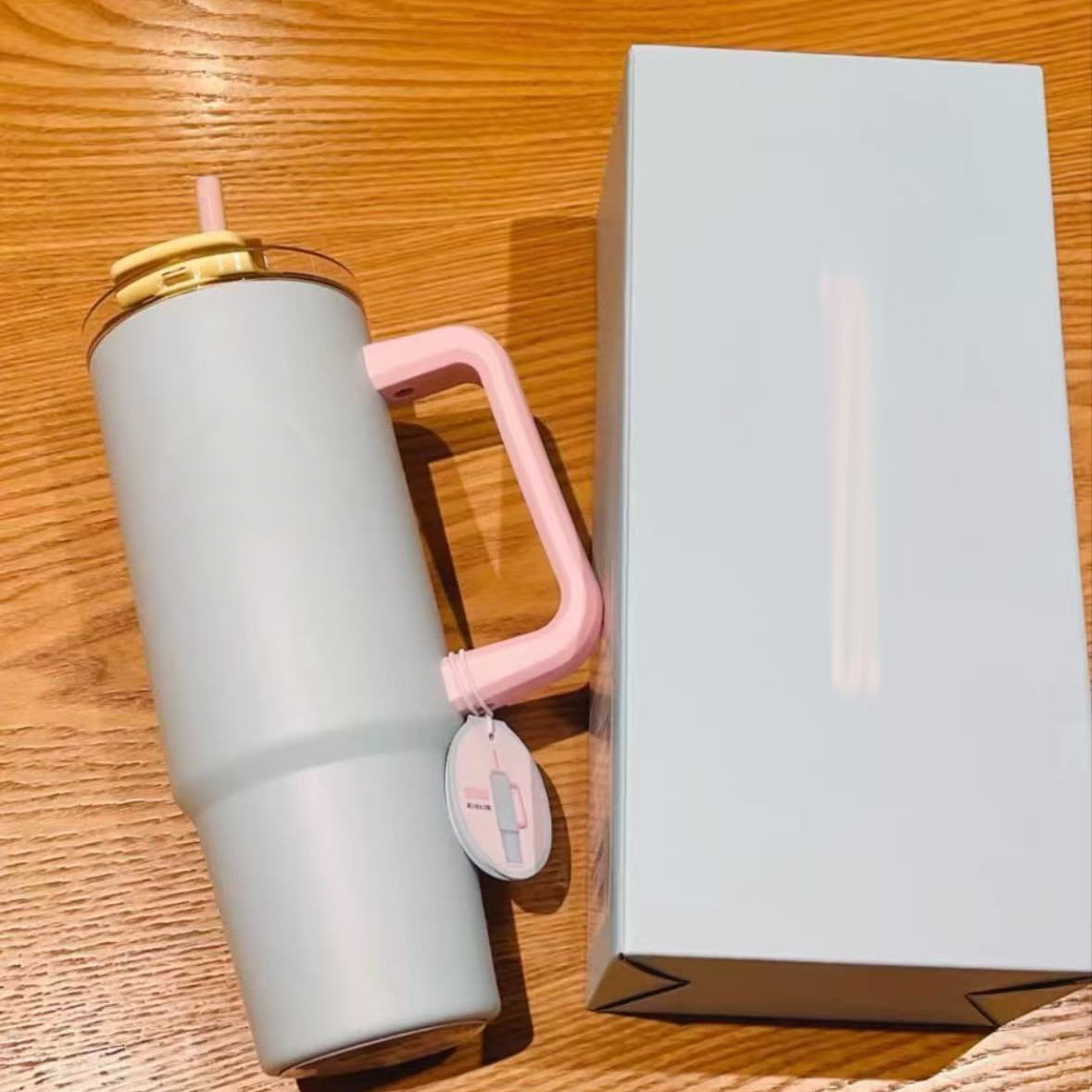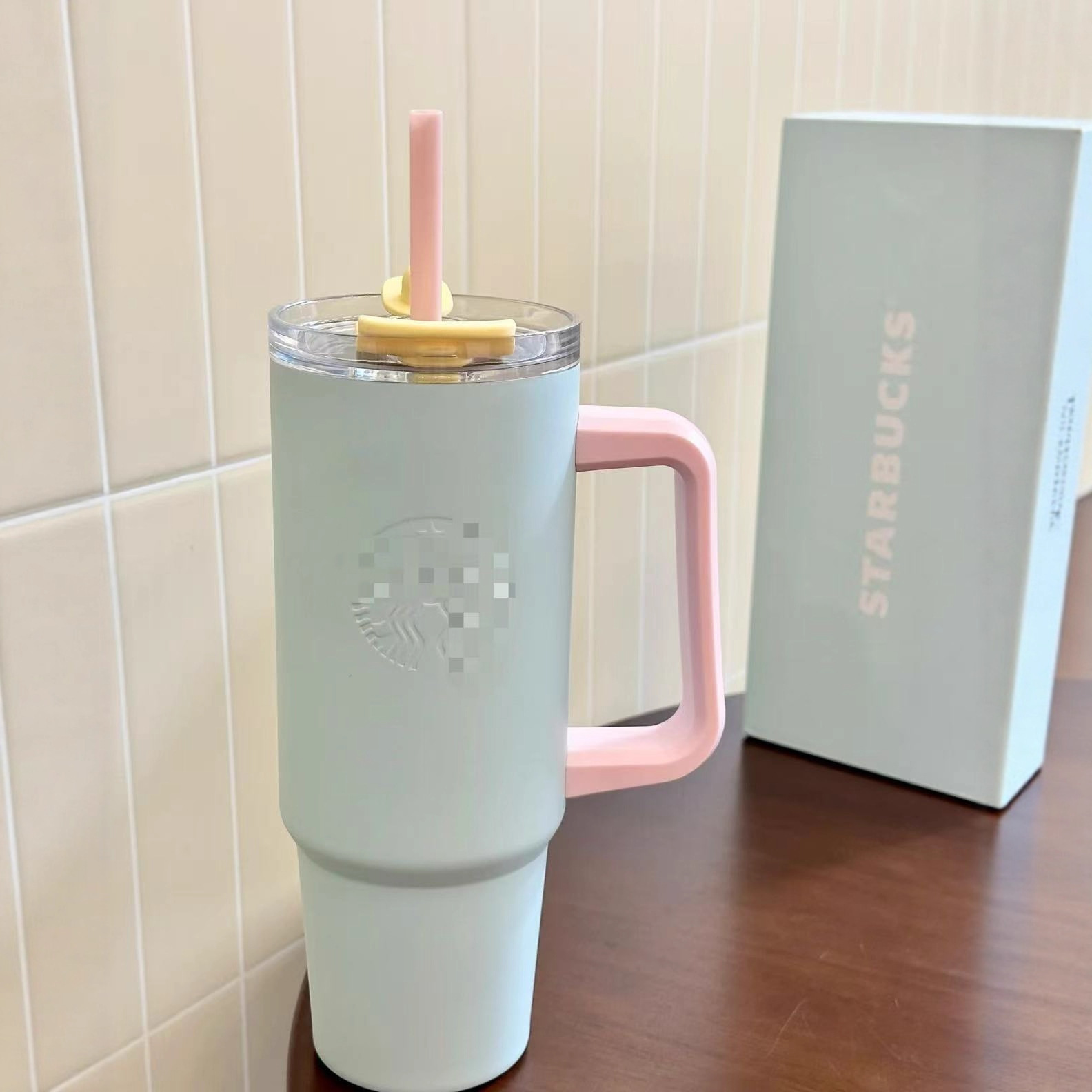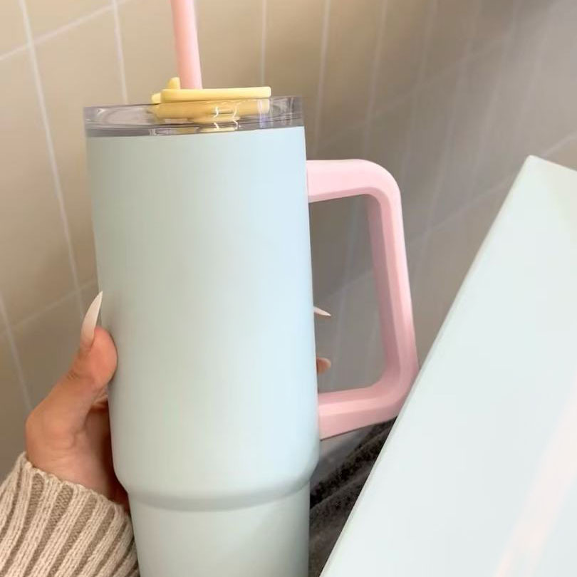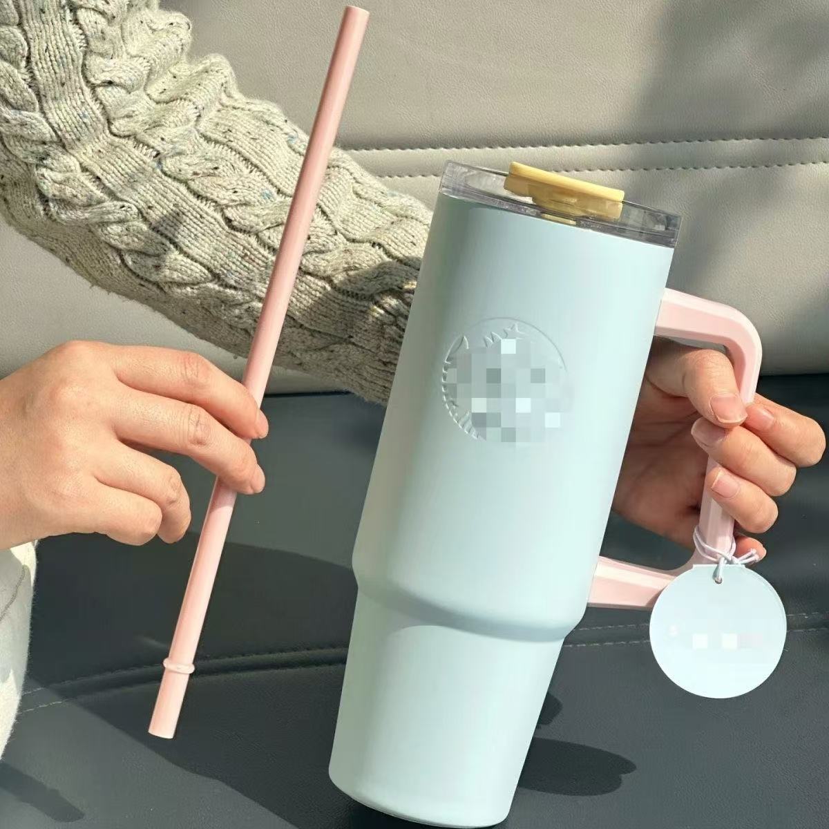 星爸爸薄荷绿晶粉色冰霸杯吸管杯高颜值大容量不锈钢水杯带手柄