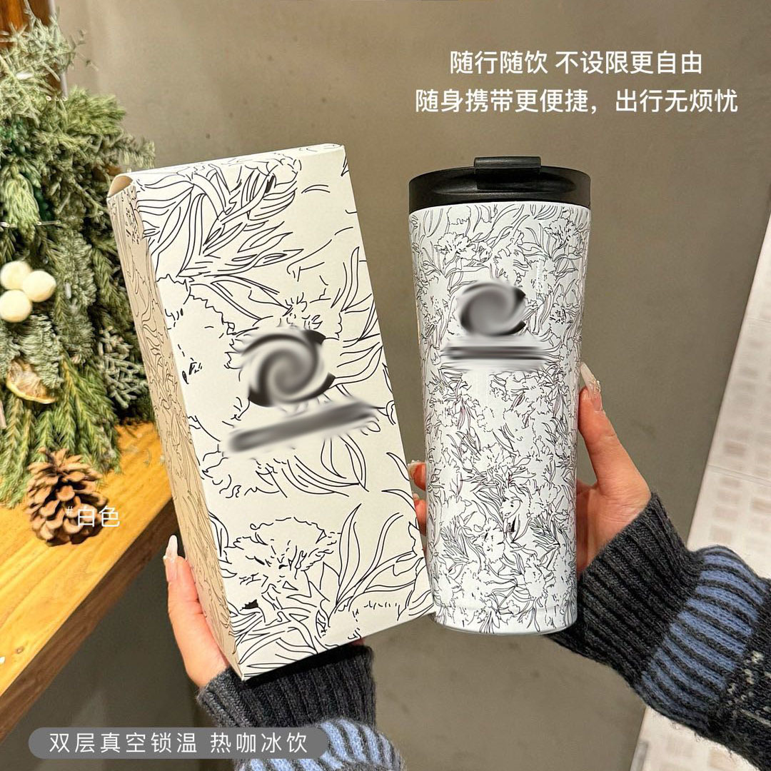 2025小香ブームモデル流紋コーヒーカップ304ステンレス大容量保温保冷カップ車載カップ
