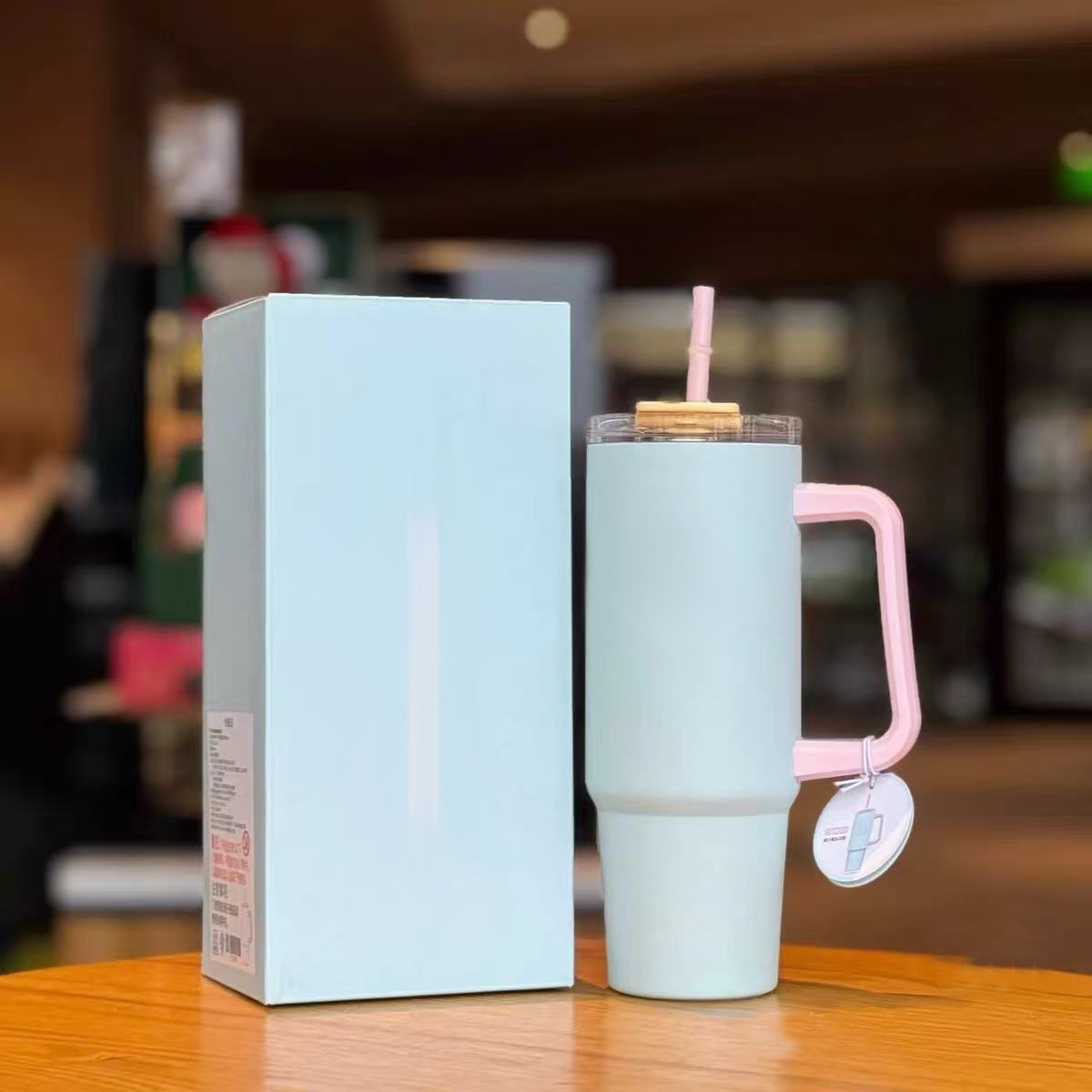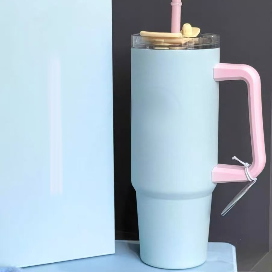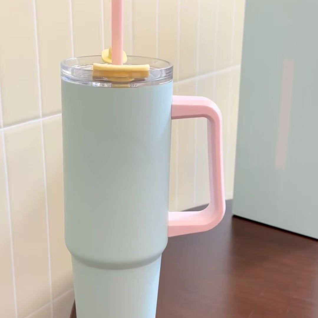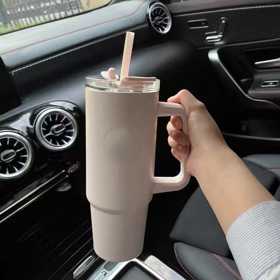 星星跨境不锈钢40oz手柄汽车杯大容量30oz喷塑吸管杯车载便携冰霸