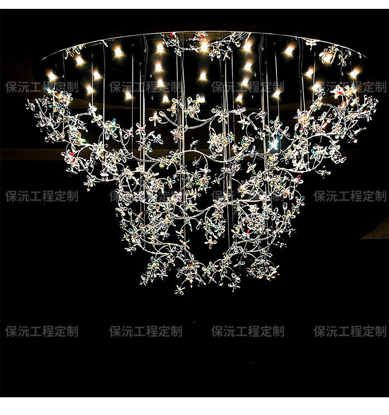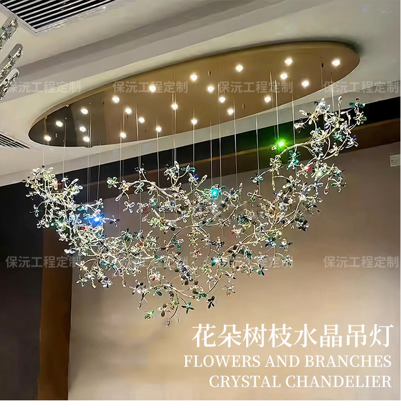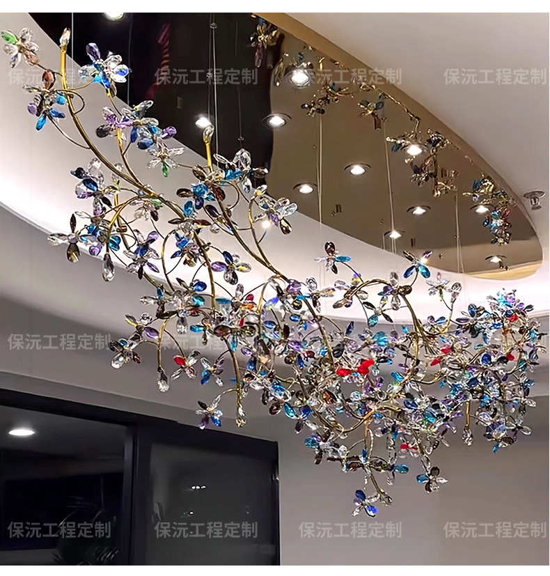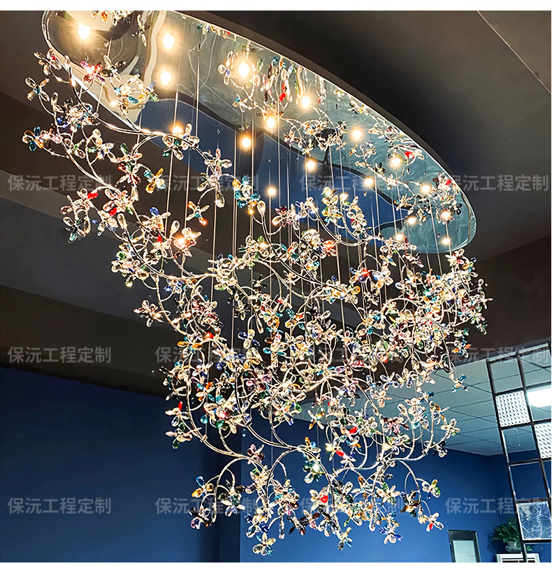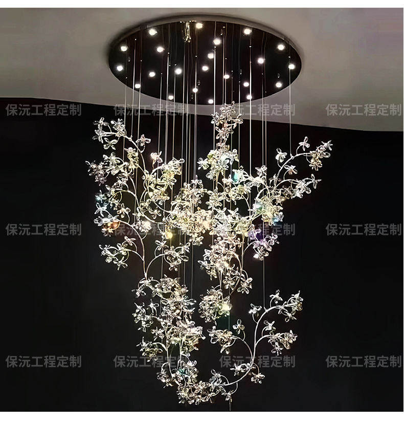 轻奢挑空客厅花朵水晶树枝吊灯餐厅高级会所别墅楼梯定制装饰灯具