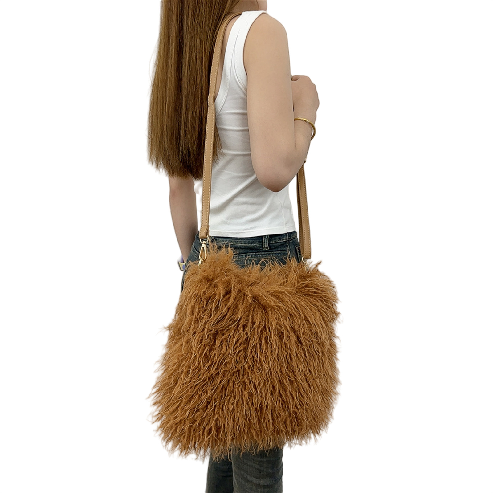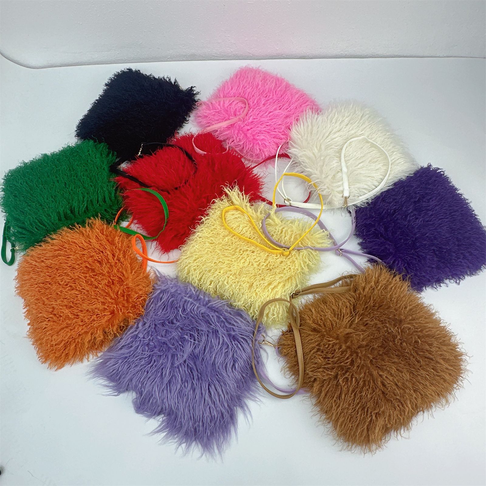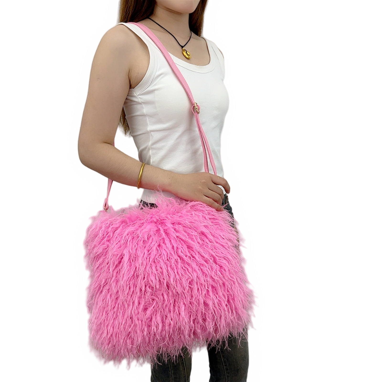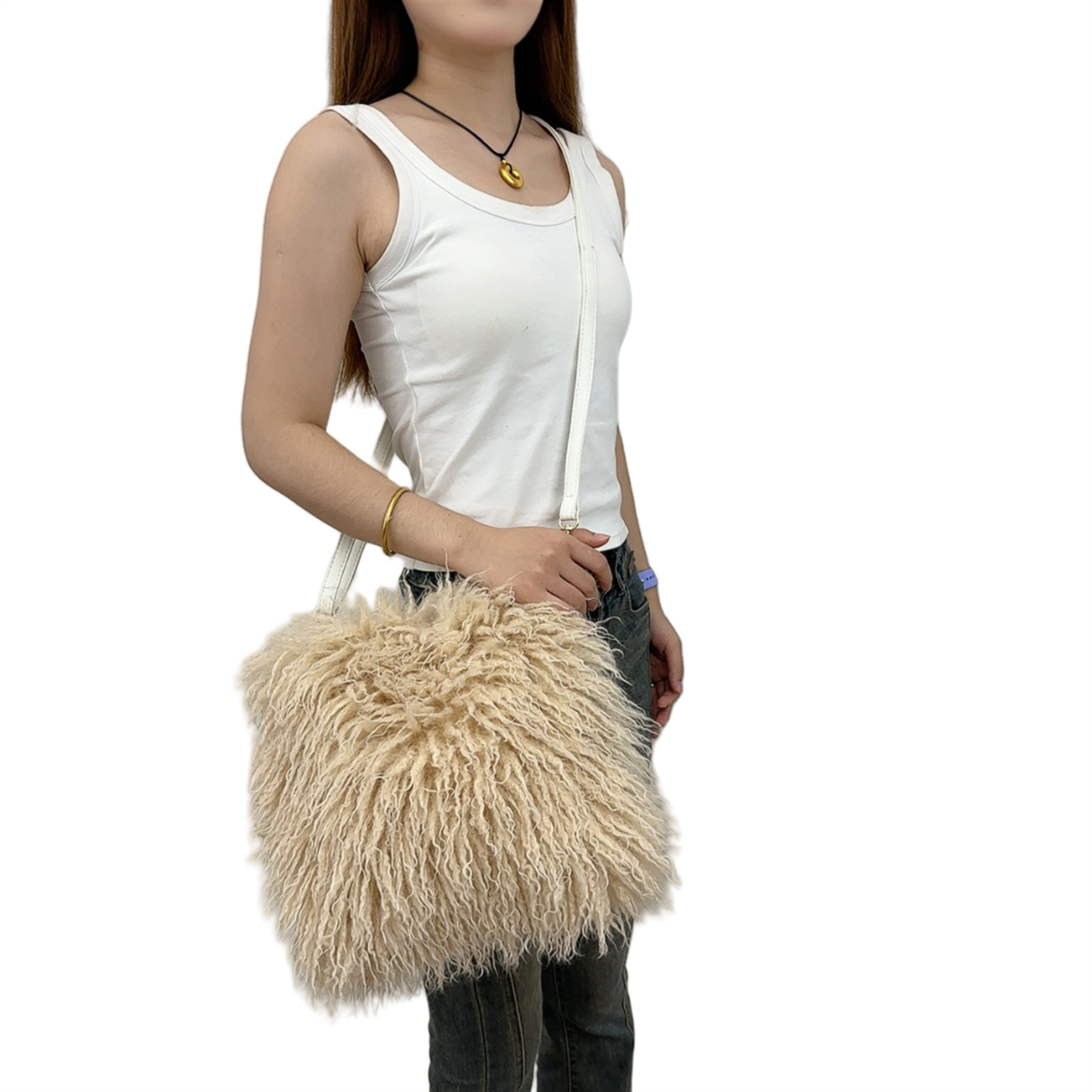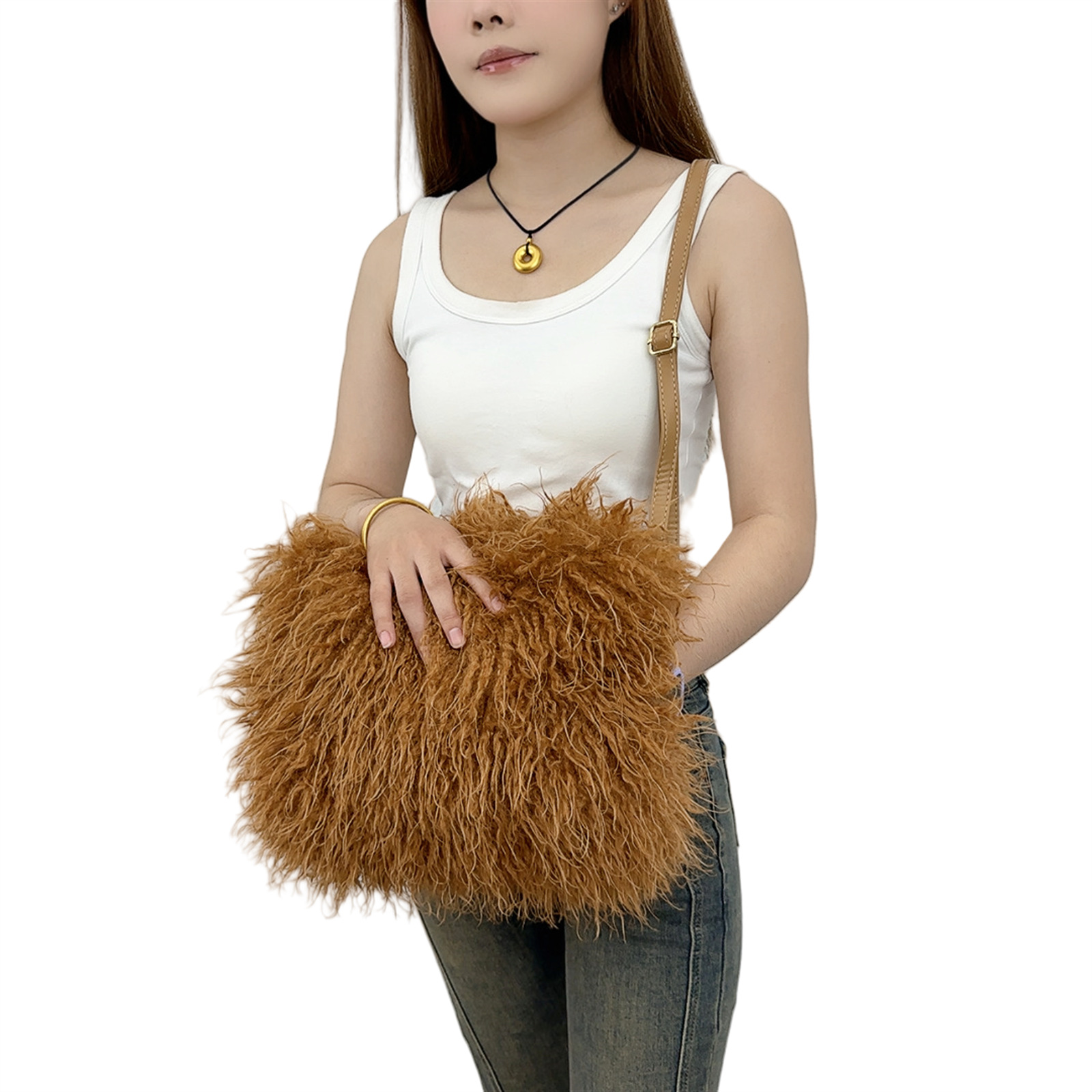 2025跨境新款欧美单肩包仿滩羊毛皮草包女士毛毛暖手包y2辣妹风