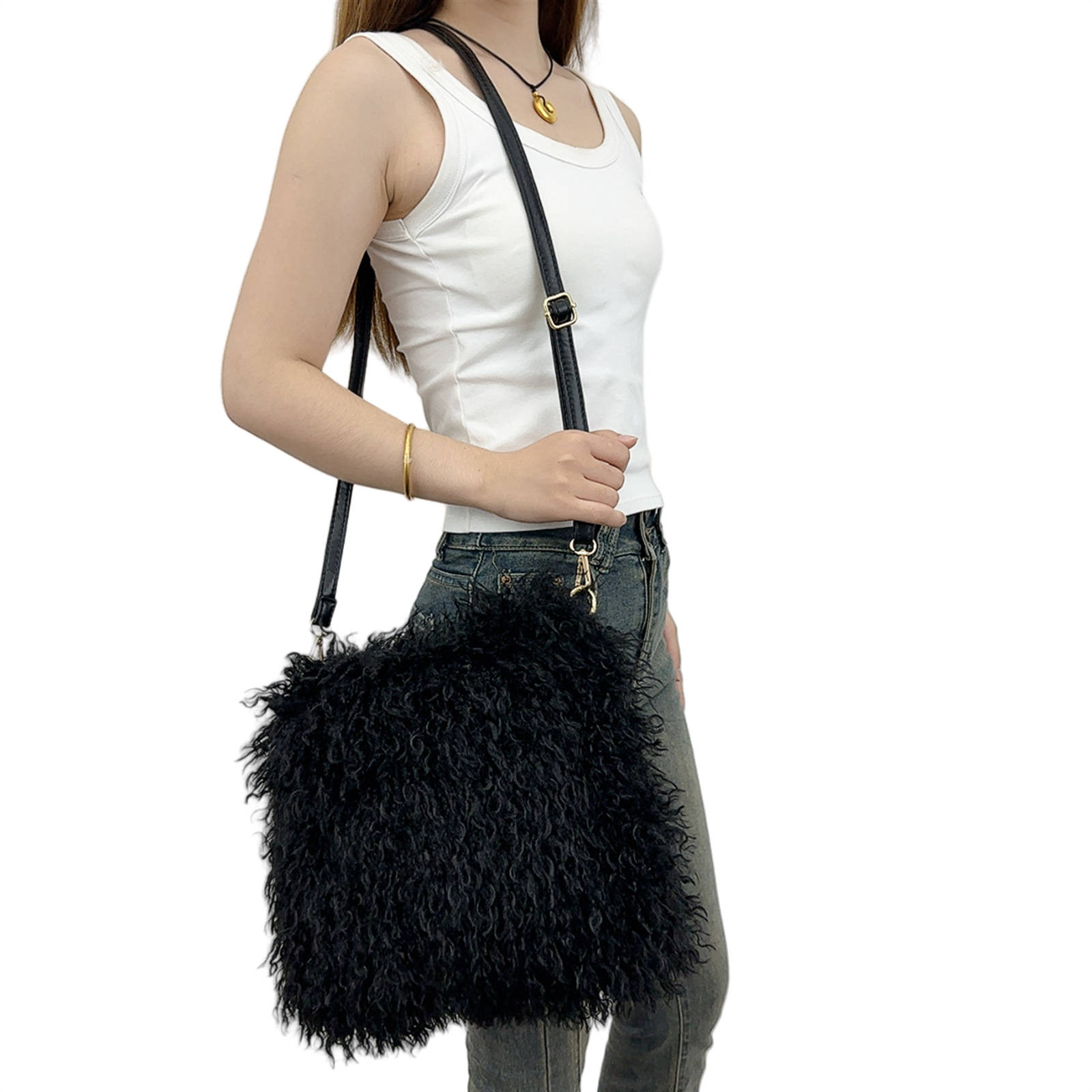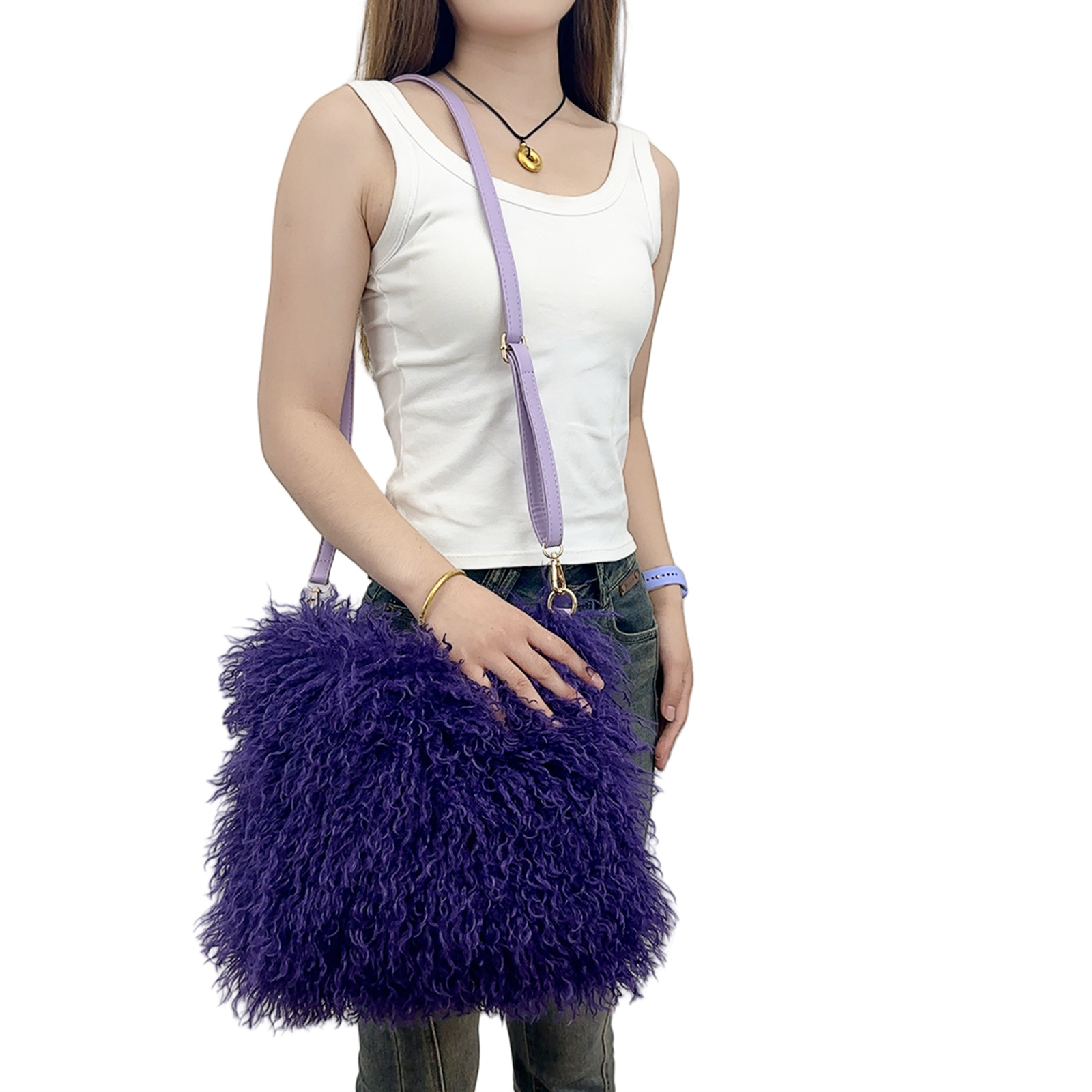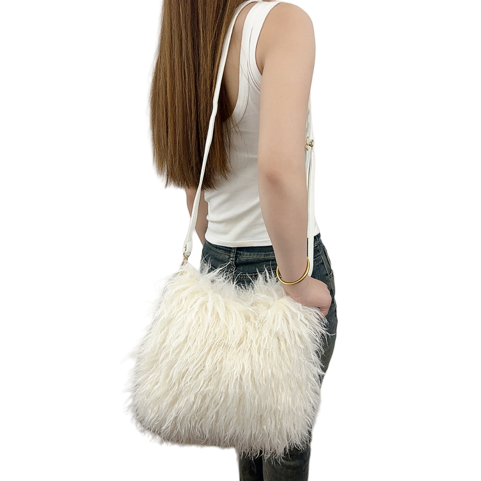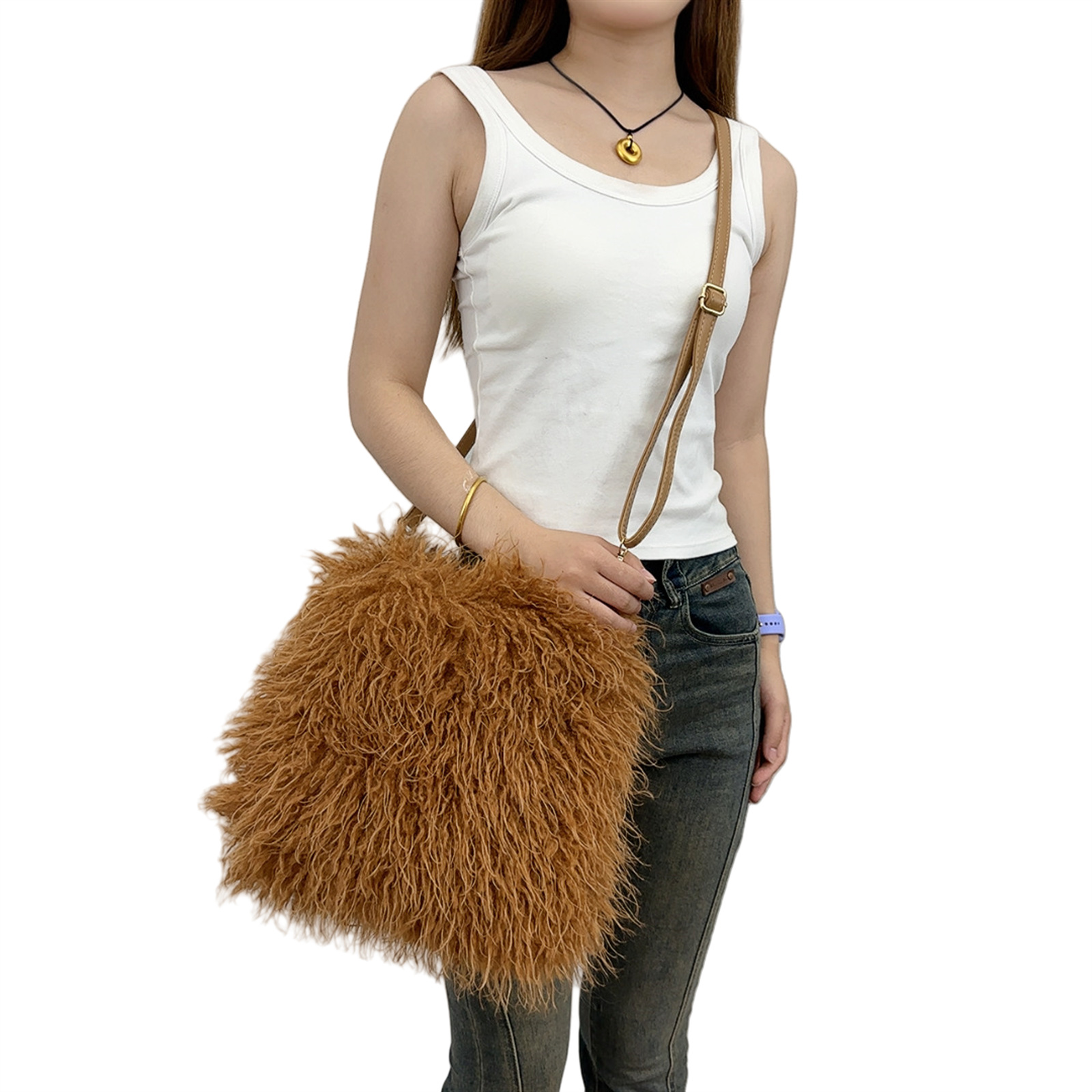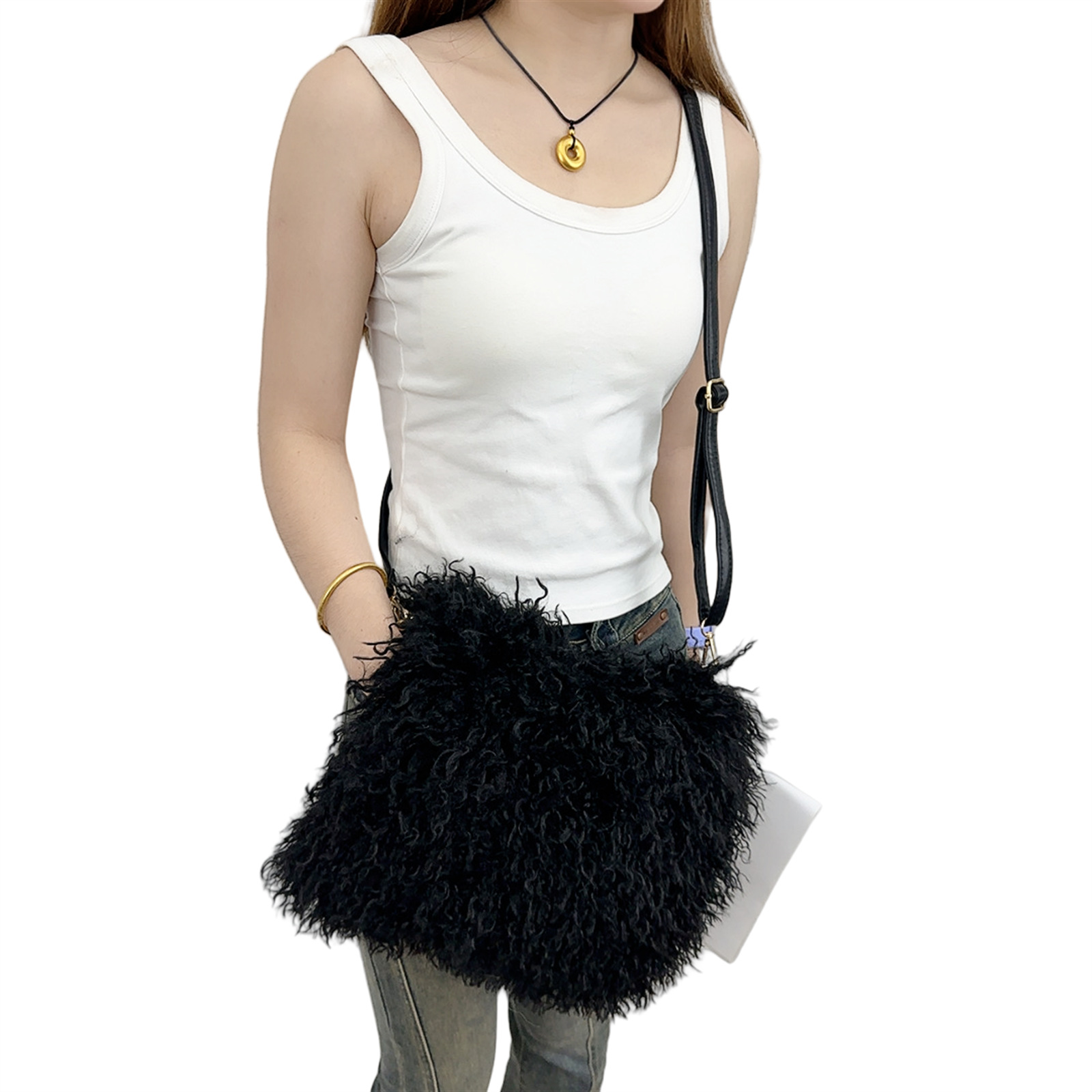 2025跨境新款欧美单肩包仿滩羊毛皮草包女士毛毛暖手包y2辣妹风