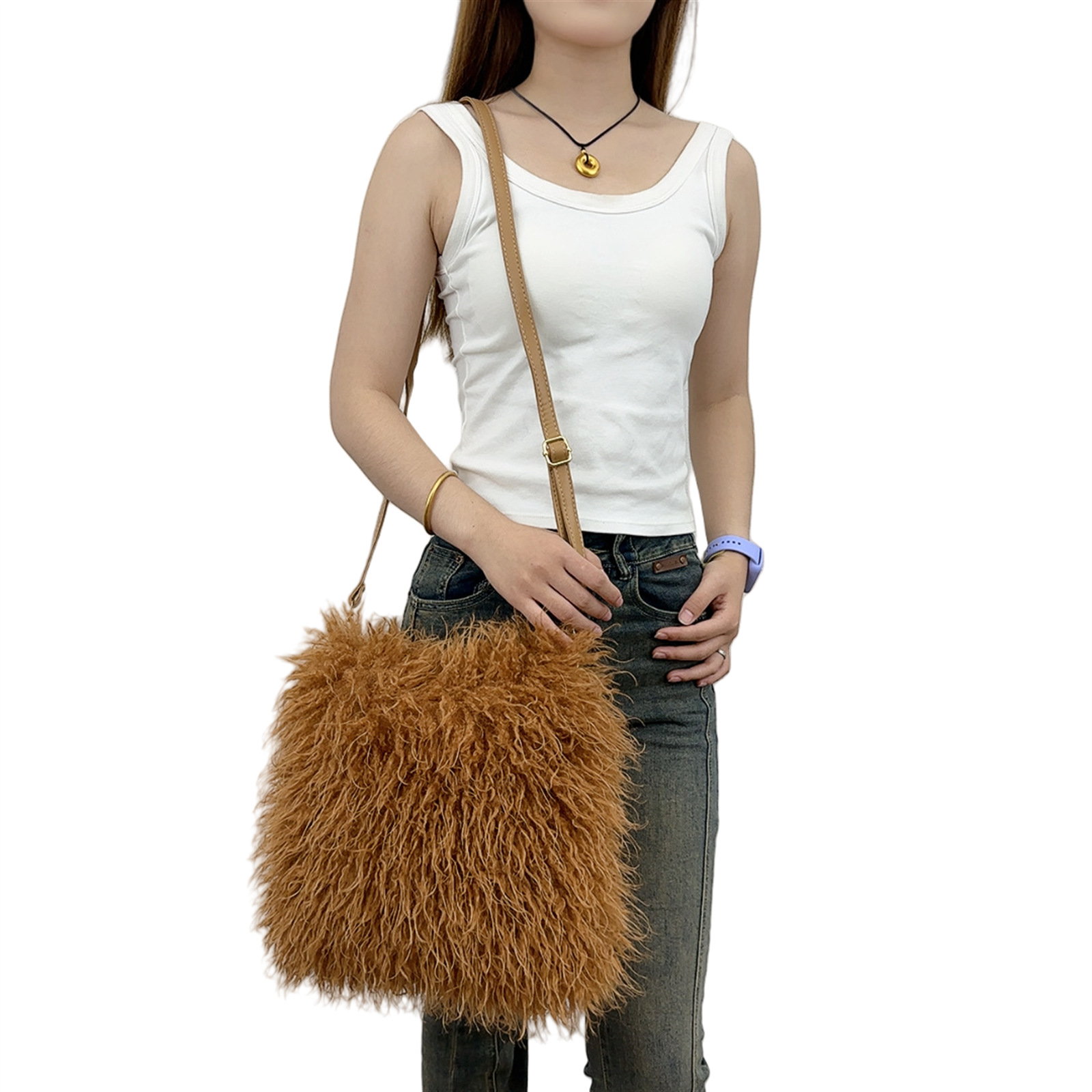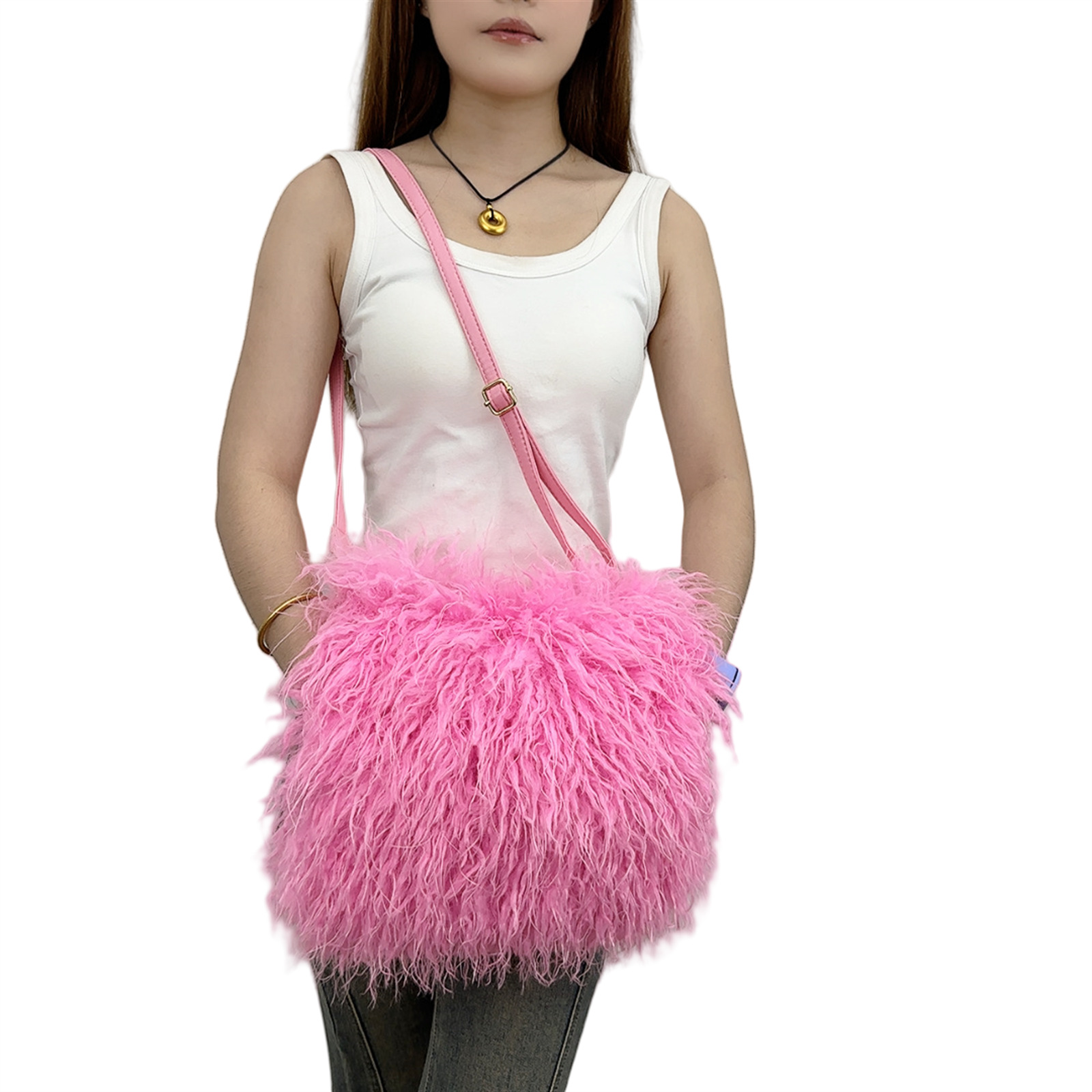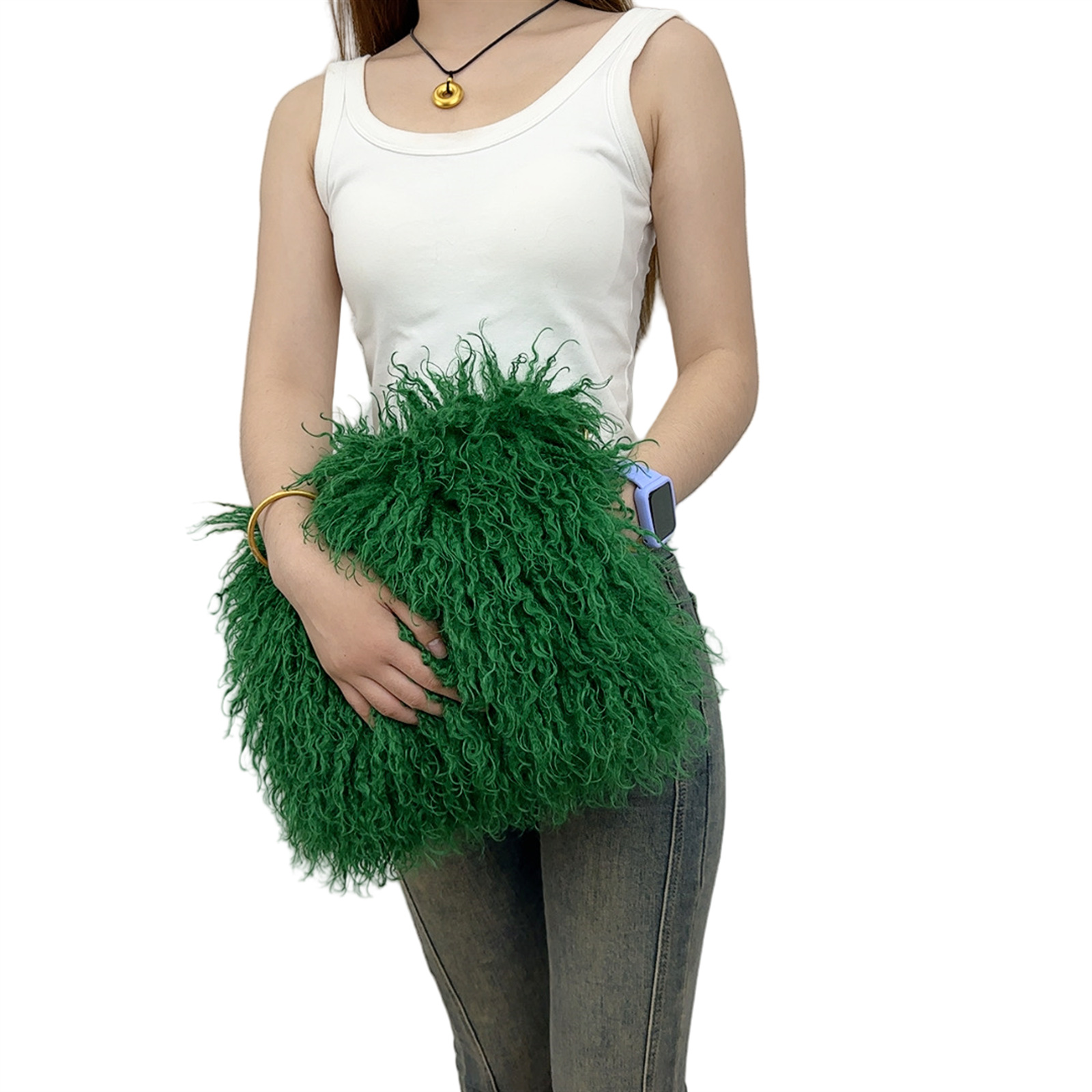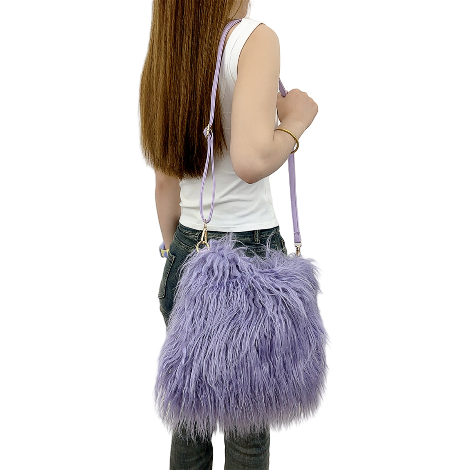 2025跨境新款欧美单肩包仿滩羊毛皮草包女士毛毛暖手包y2辣妹风