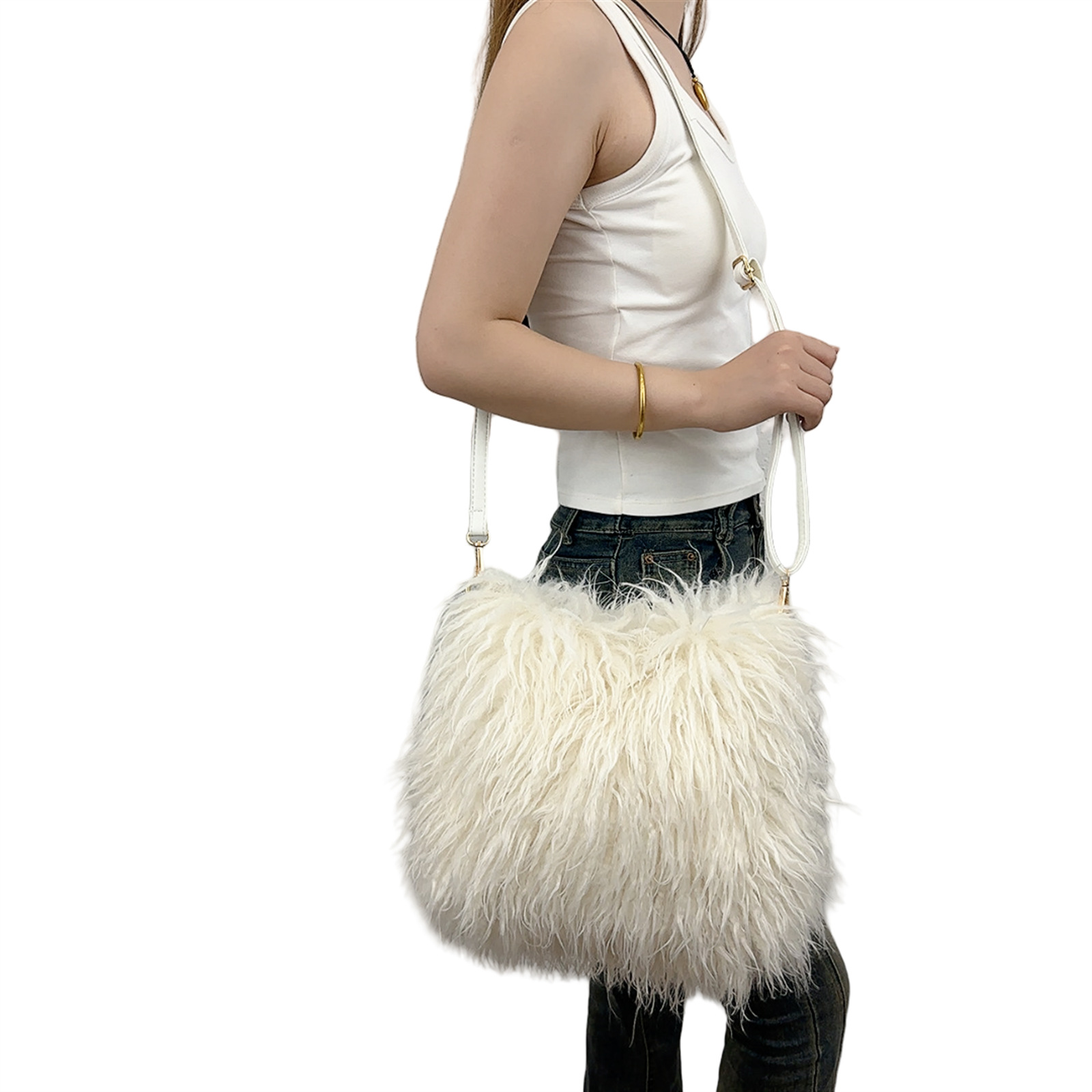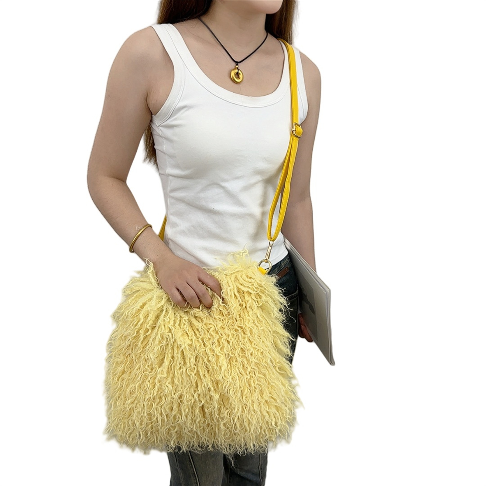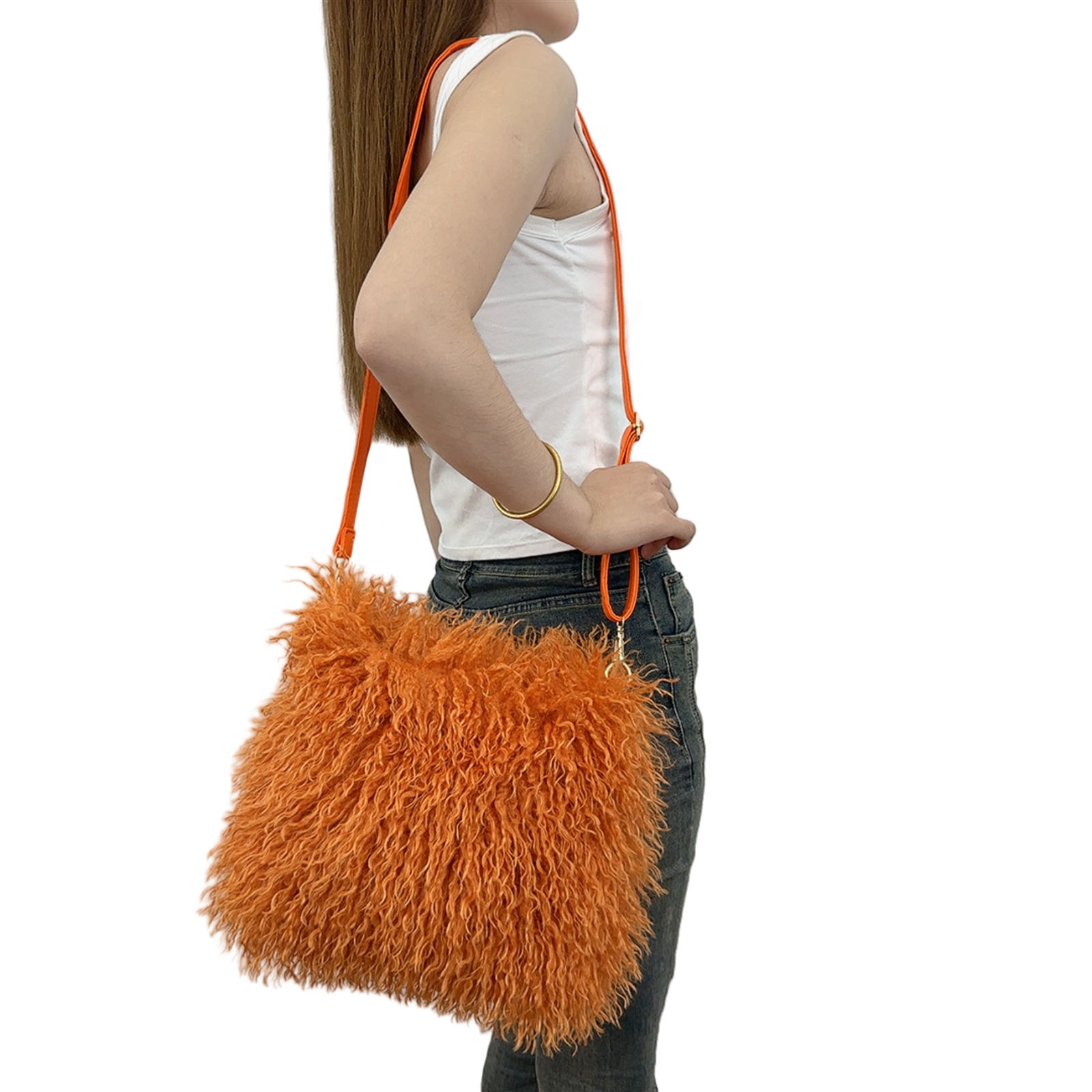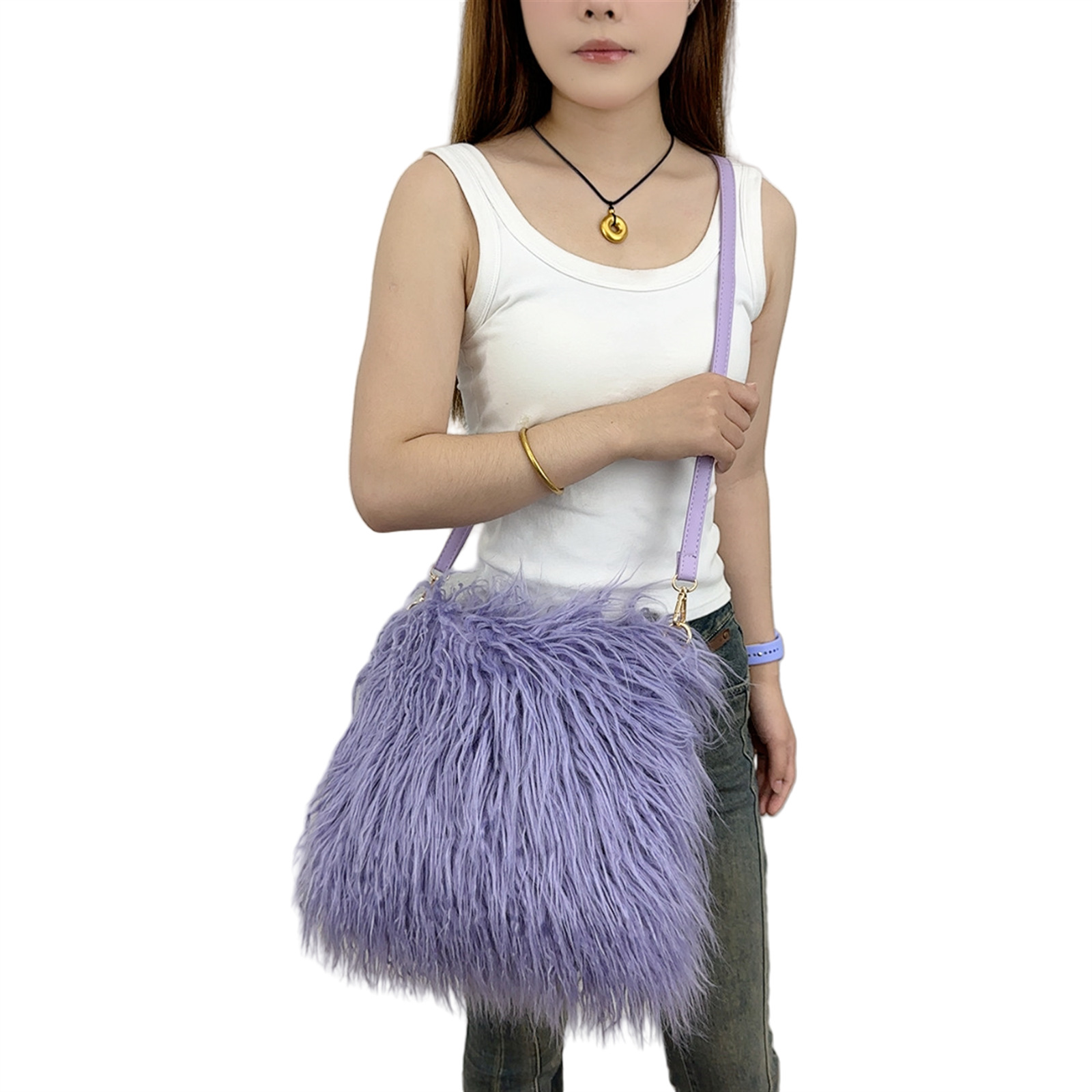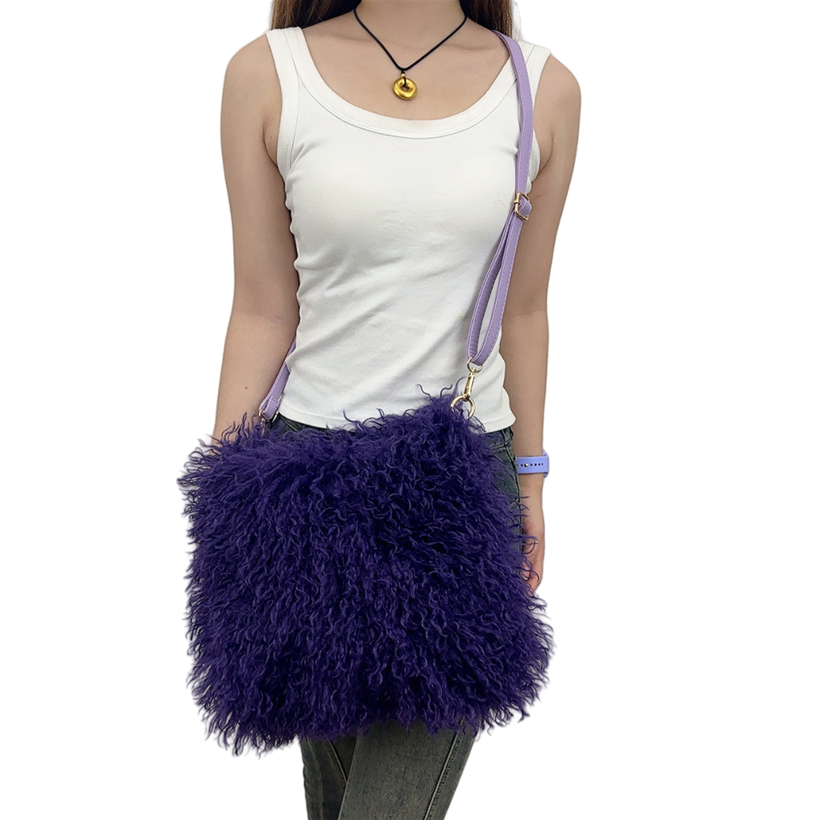 2025跨境新款欧美单肩包仿滩羊毛皮草包女士毛毛暖手包y2辣妹风