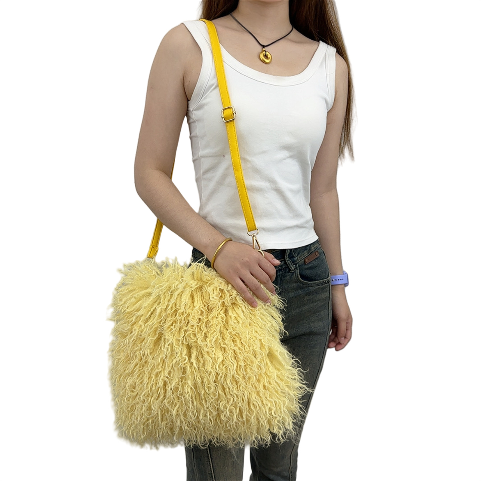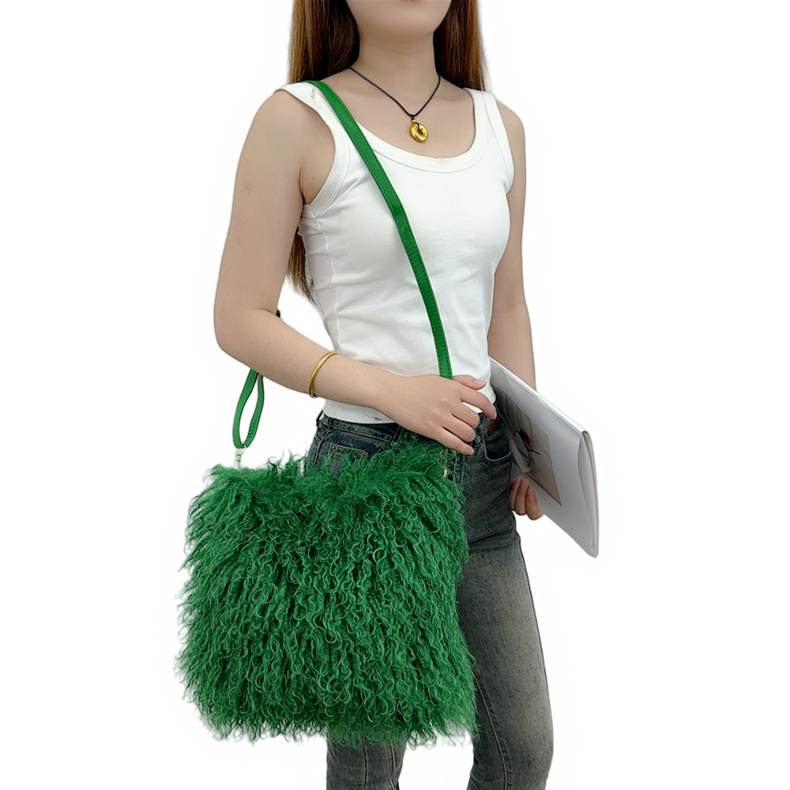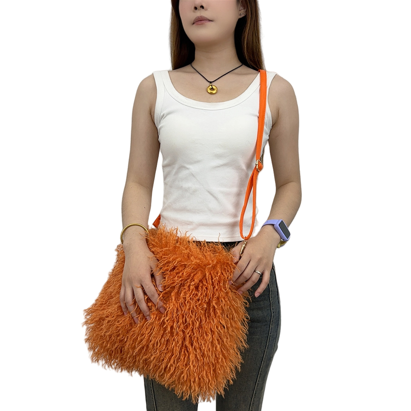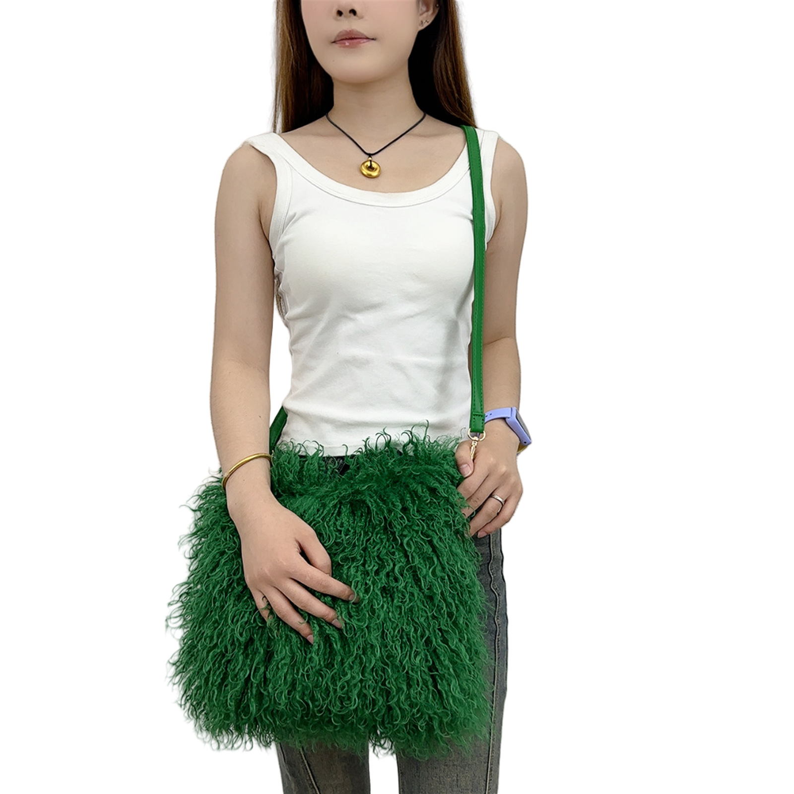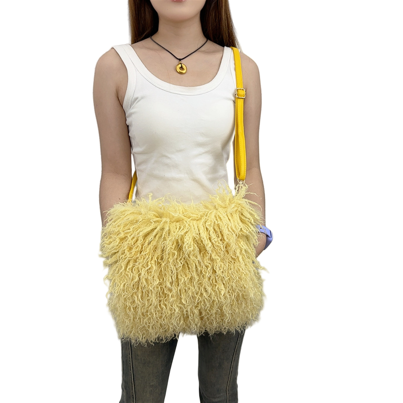2025跨境新款欧美单肩包仿滩羊毛皮草包女士毛毛暖手包y2辣妹风