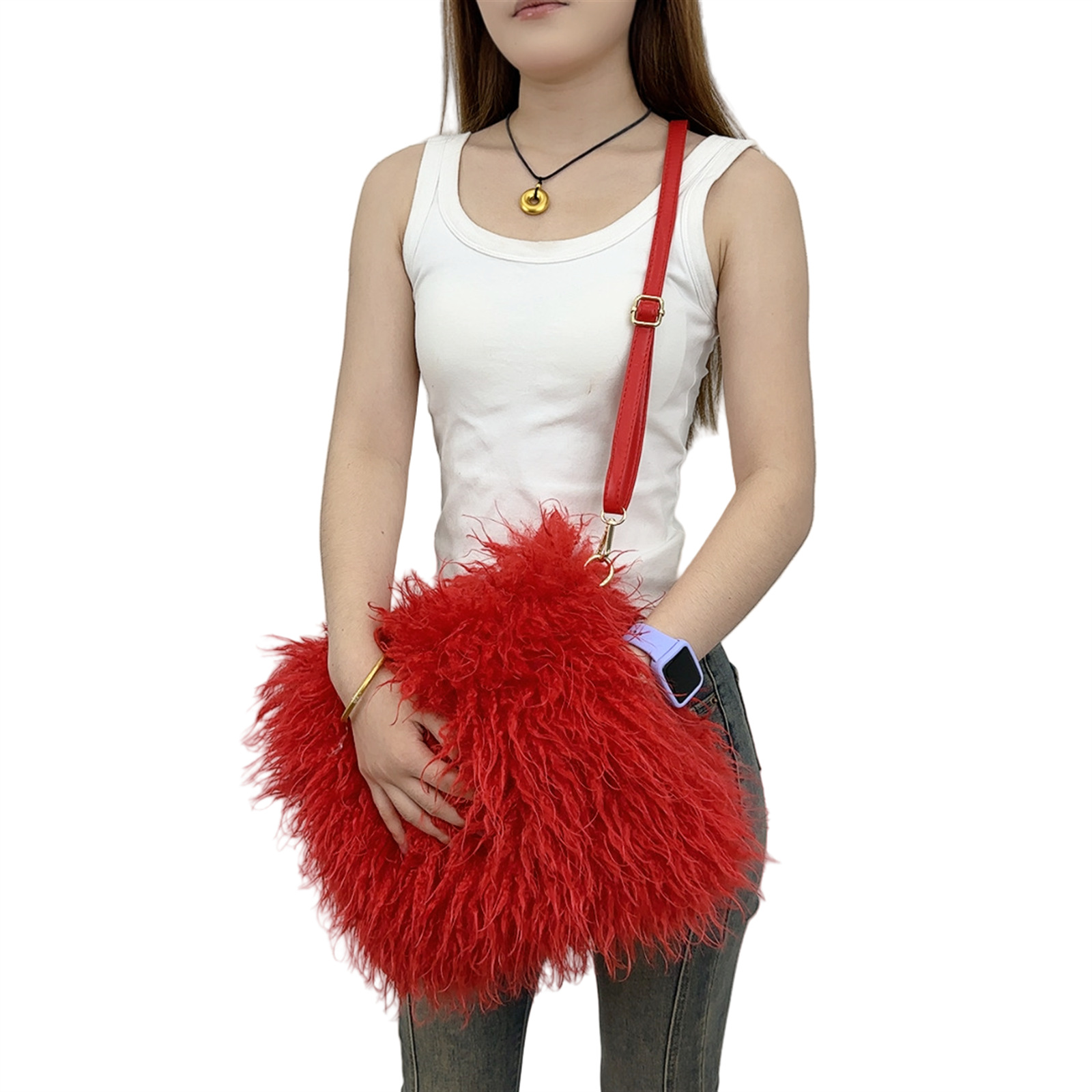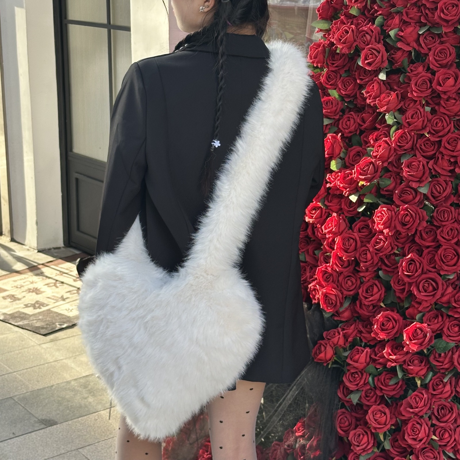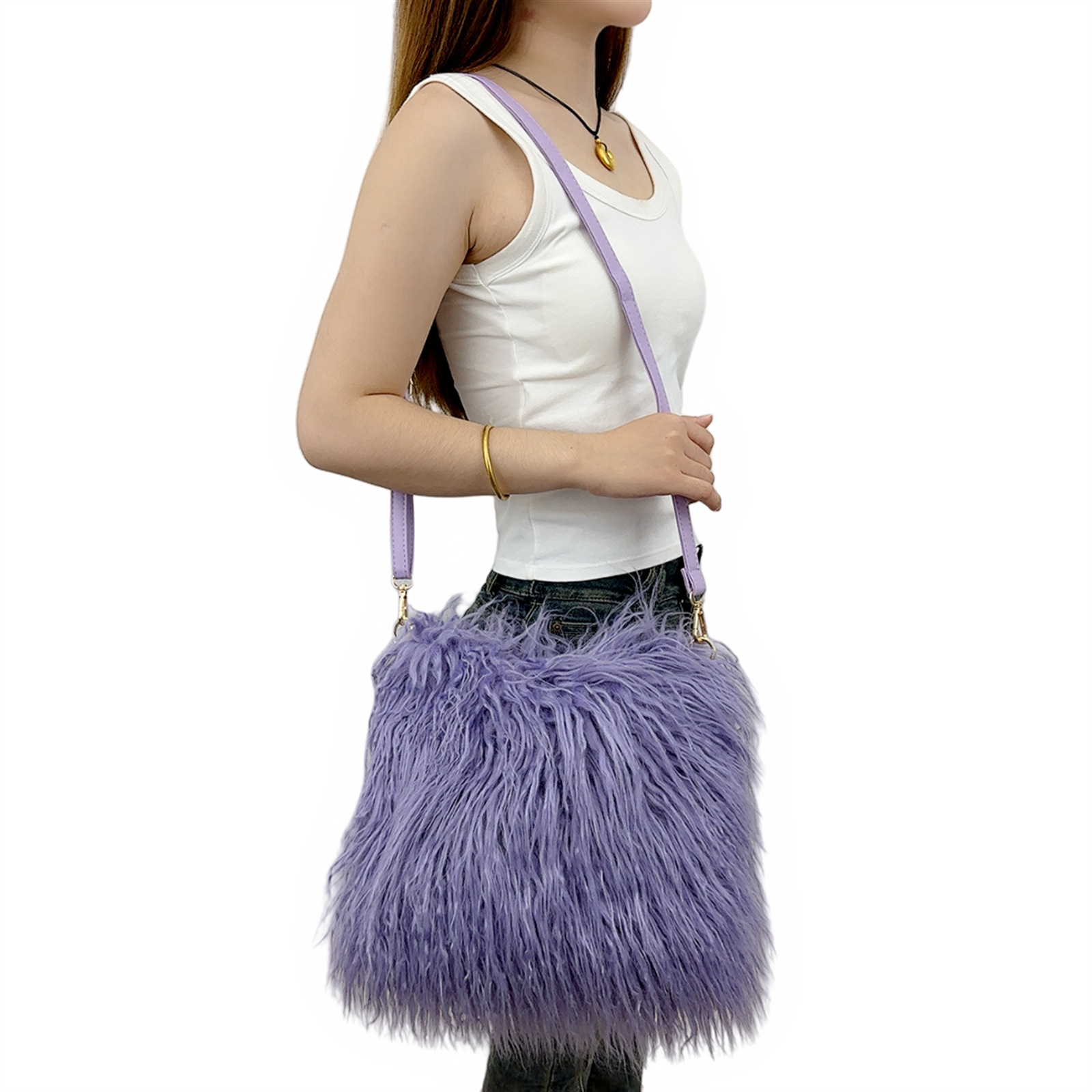 欧美跨境斜挎爱心包仿狐狸皮草毛绒包Heart Shaped Shoulder Bag