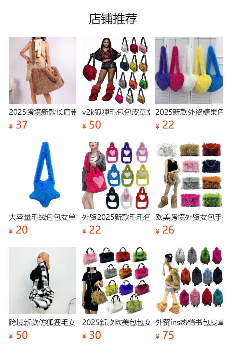 2025跨境新款长肩带毛绒包包女包仿狐狸毛ins大容量皮草托特包