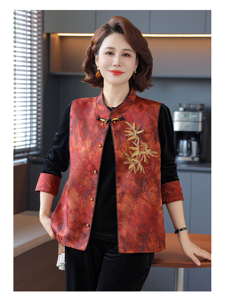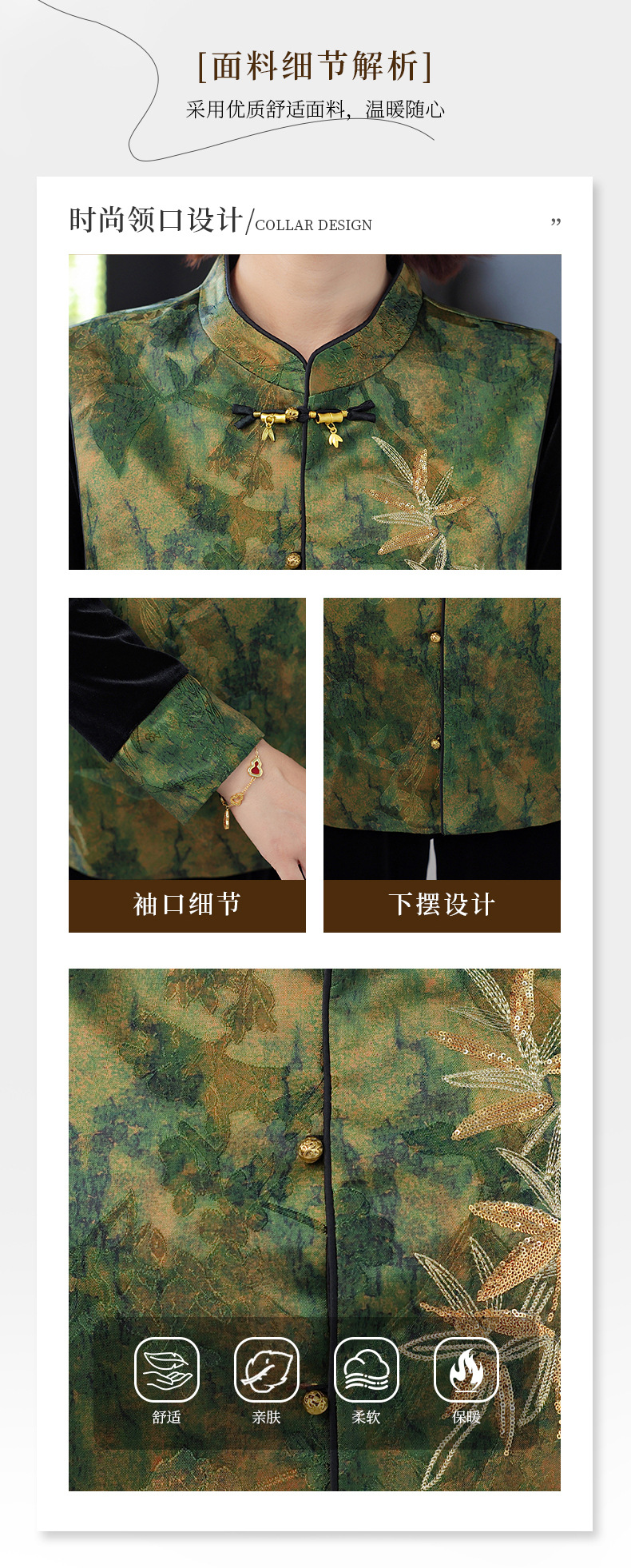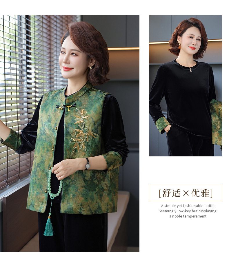 中式妈妈金丝绒国风套装新款中老年女装洋气加厚马甲三件套上衣