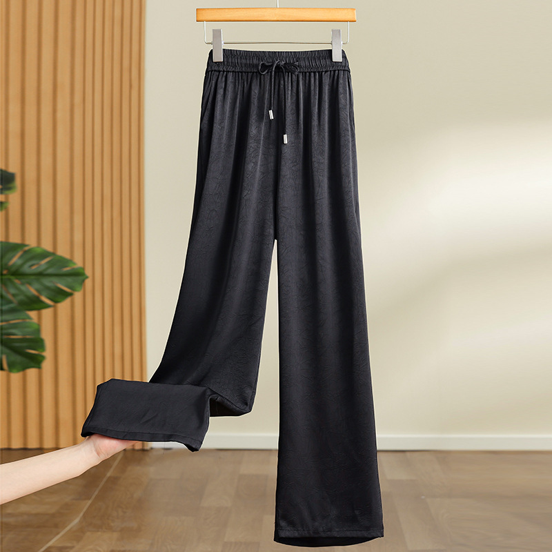 サテンの新商品の純色の筒のズボンの高腰の狭い版の広腿のズボンはゆったりしています。