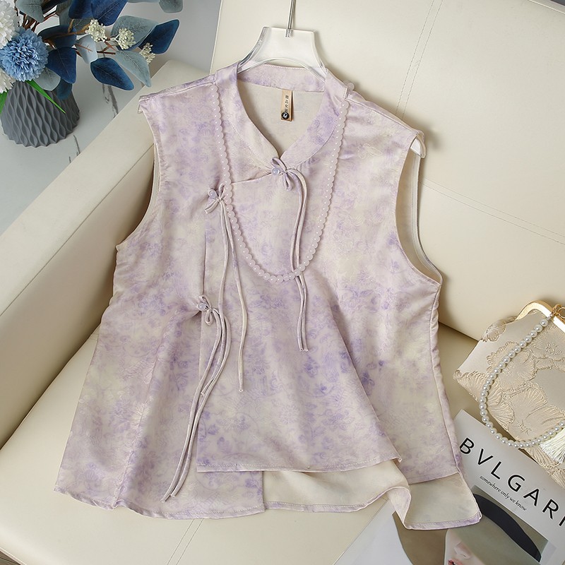 新しい中国風の国民風女性の 2025 夏人気のノースリーブファッショナブルなジャカードボタン付きトップベストシャツ