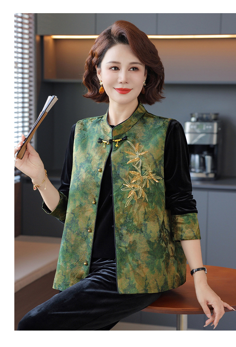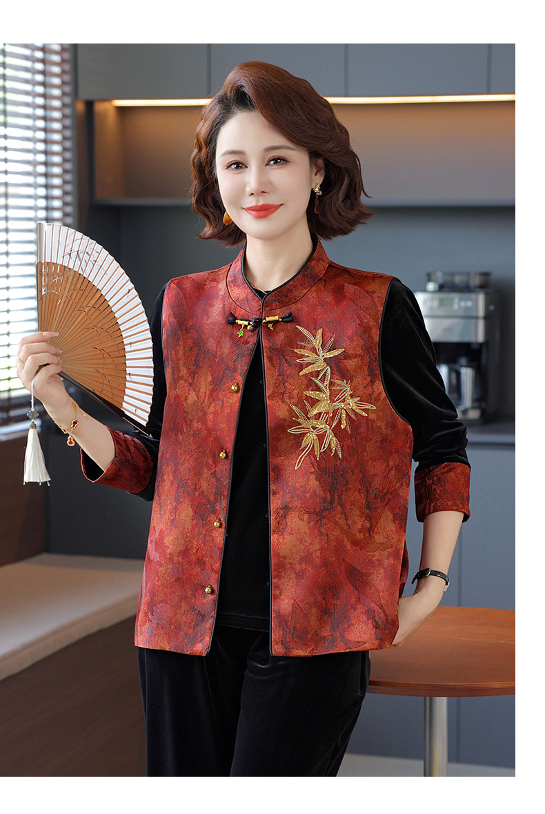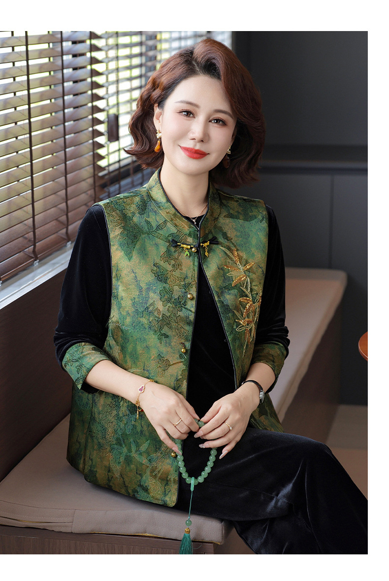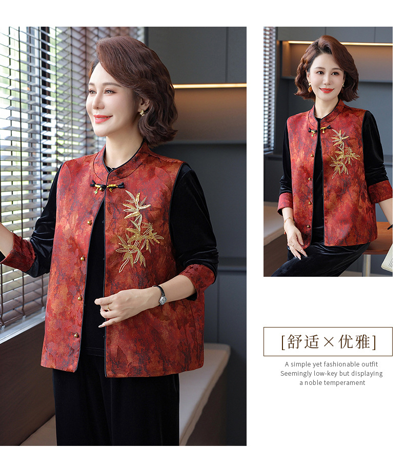 中老年女装国风马甲上衣套装中式新款中年妈妈装春秋装丝绒两件套