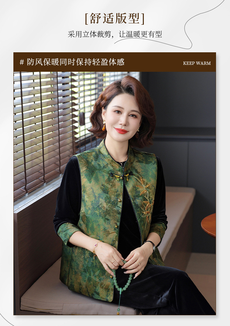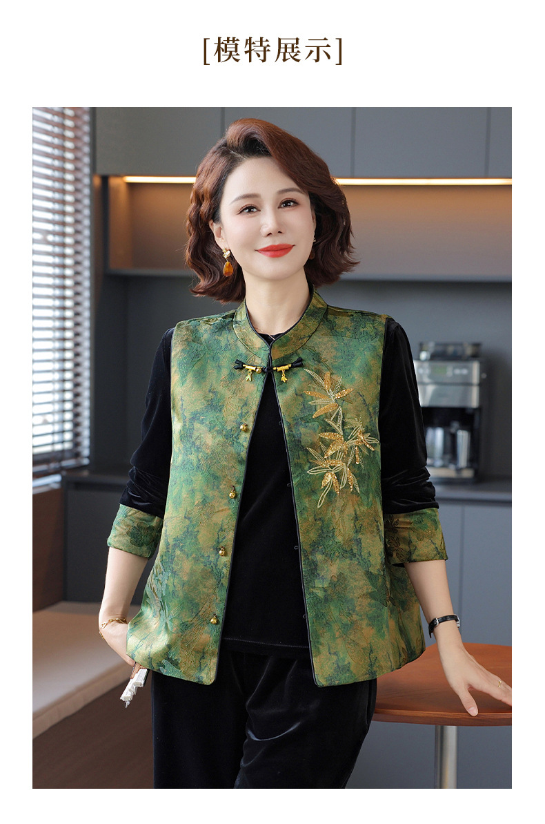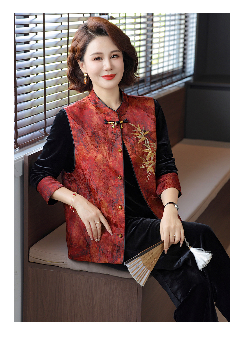 中老年女装国风马甲上衣套装中式新款中年妈妈装春秋装丝绒两件套