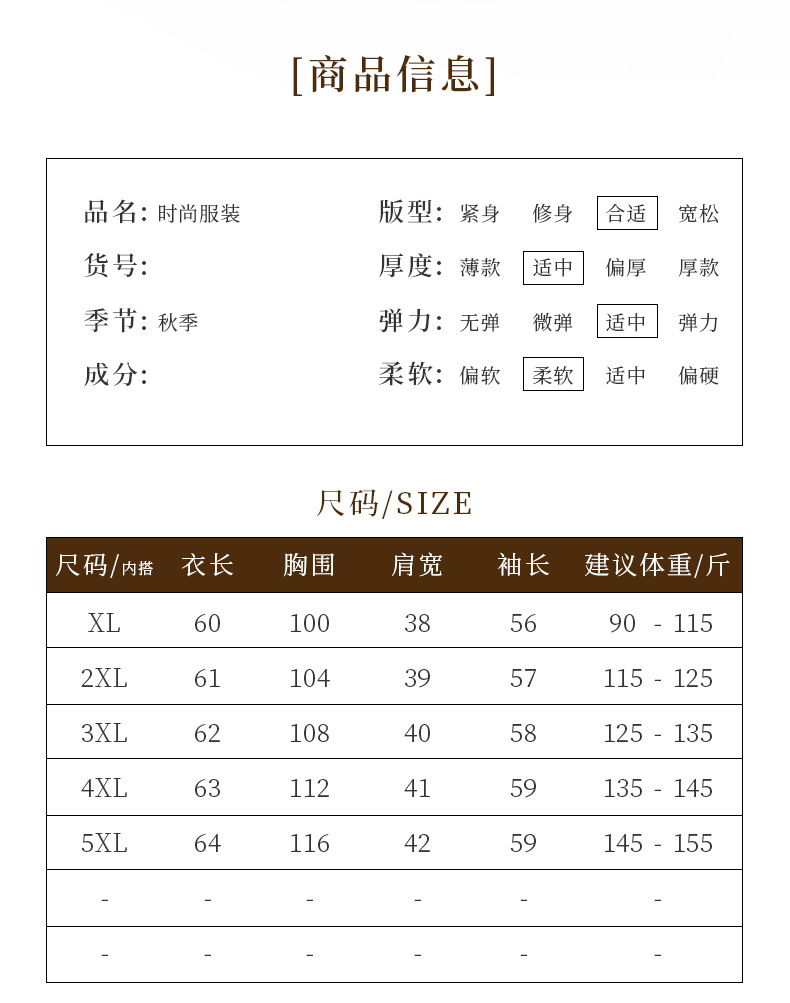 尺码 XL【90斤-105斤】,2XL【105斤-120斤】,3XL【120斤-135斤】,4XL【135斤-150斤】,5XL【150斤-165斤】
