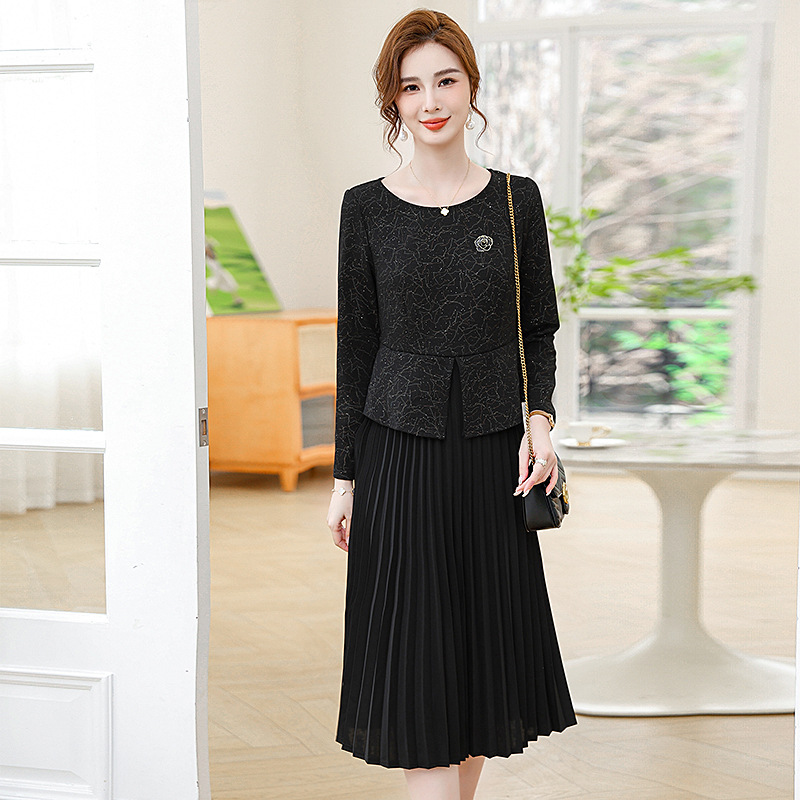気質の中年の婦人服のワンピースの偽の2つの小さい香ばしい風の薄い金の洋風のお母さんは春秋の金の中で長いスカートを詰めます。