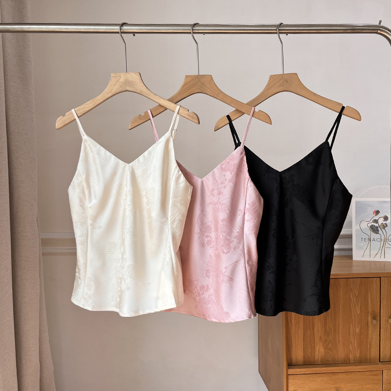 ジャカード新中国風サテンサスペンダー2025国民風ベスト、夏のハイエンドファッショナブルで快適なボトムストップ付き