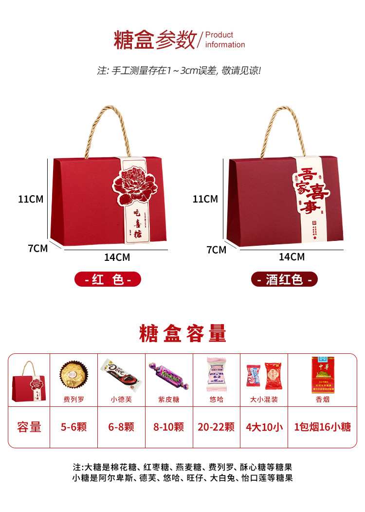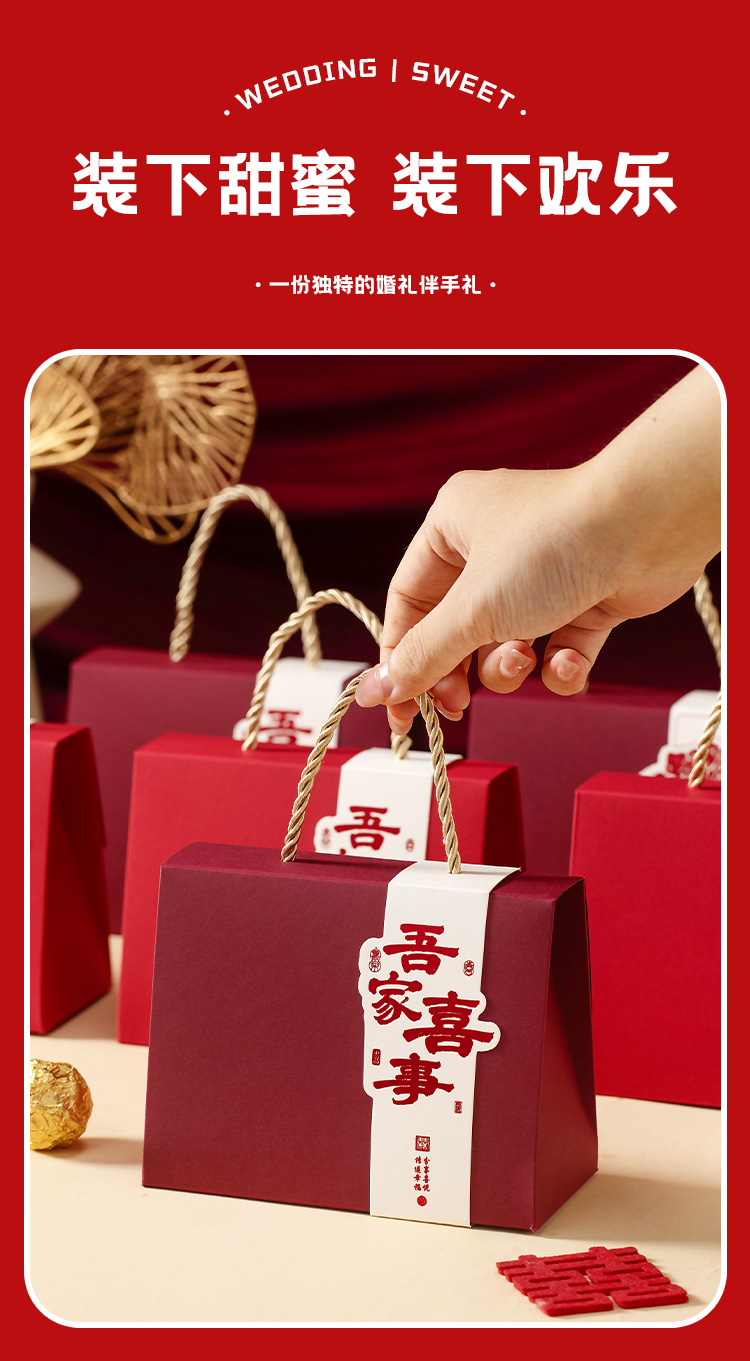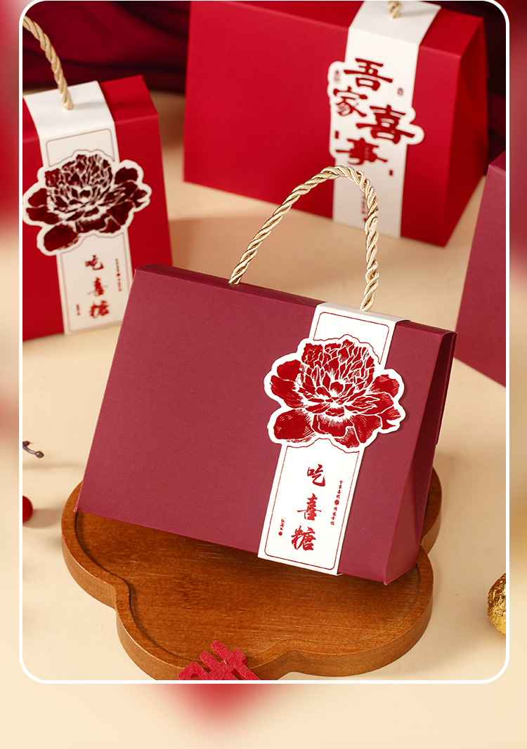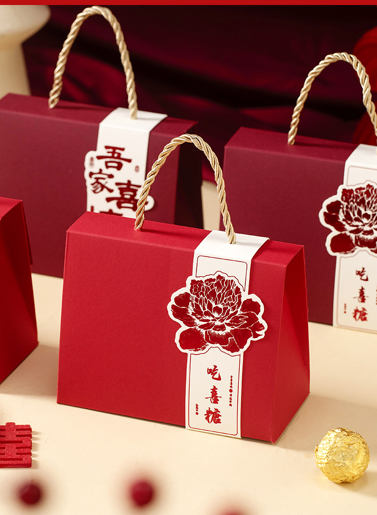 新型手提げ喜糖箱お土産中国式結婚婚約ギフトボックス百日回ギフトボックス中国風喜糖箱