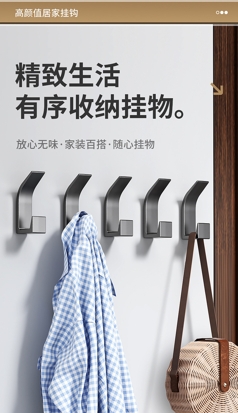 免打孔挂衣钩创意墙壁衣柜衣帽钩卫生间毛巾挂勾门后衣服鞋柜挂钩