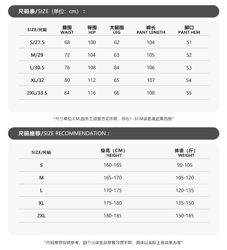 尺码 S 建议(90-106)斤,M 建议(106-120)斤,L 建议(120-136)斤,XL 建议(136-150)斤,2XL 建议(150-170)斤