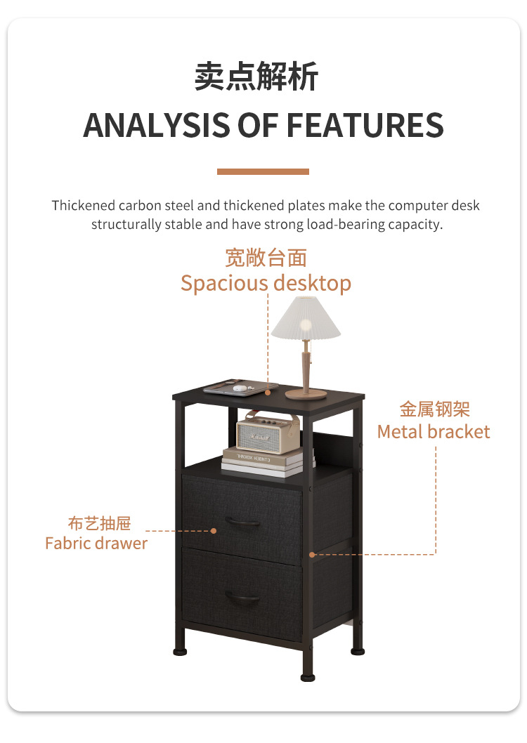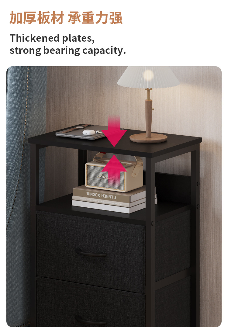 跨境现货卧室床边储物柜含充电床头柜小型书房靠墙多层收纳置物柜